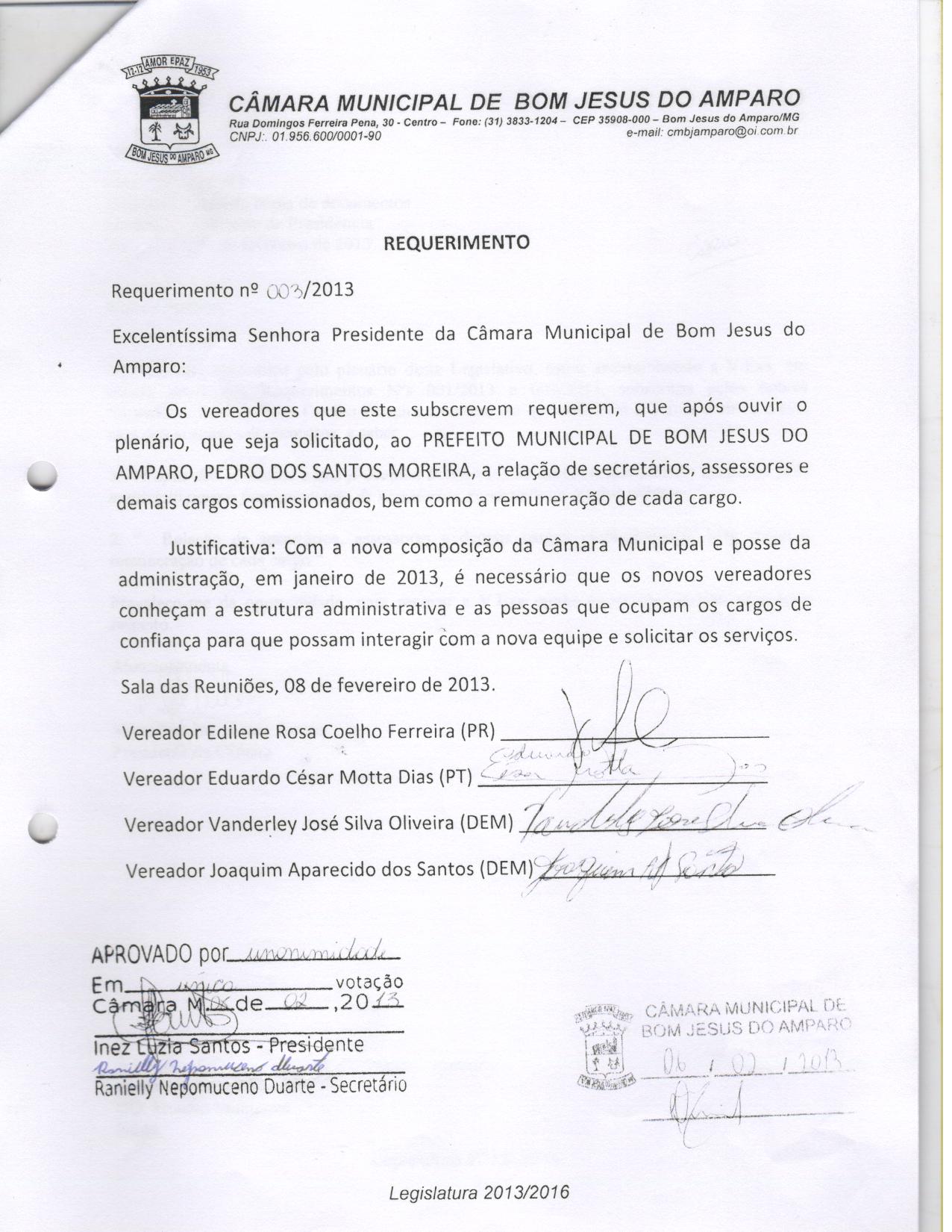 REQ 3/2013 - Requerimento