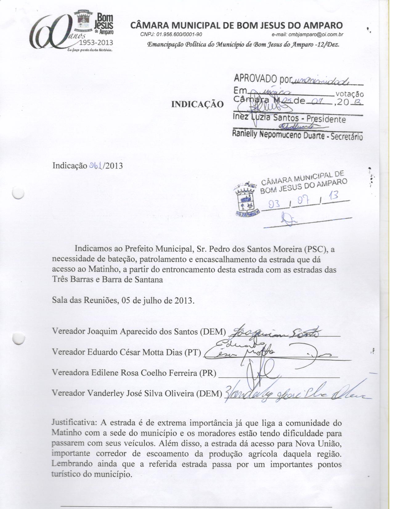 IND 61/2013 - Indicação