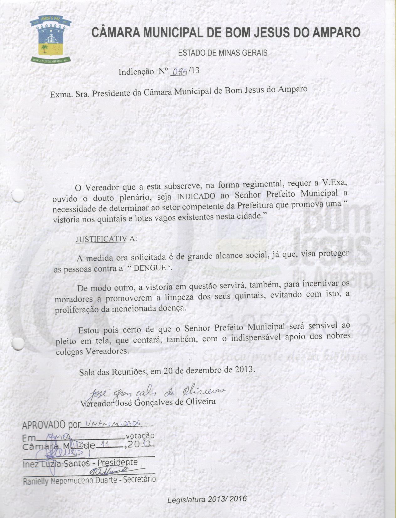 IND 85/2013 - Indicação