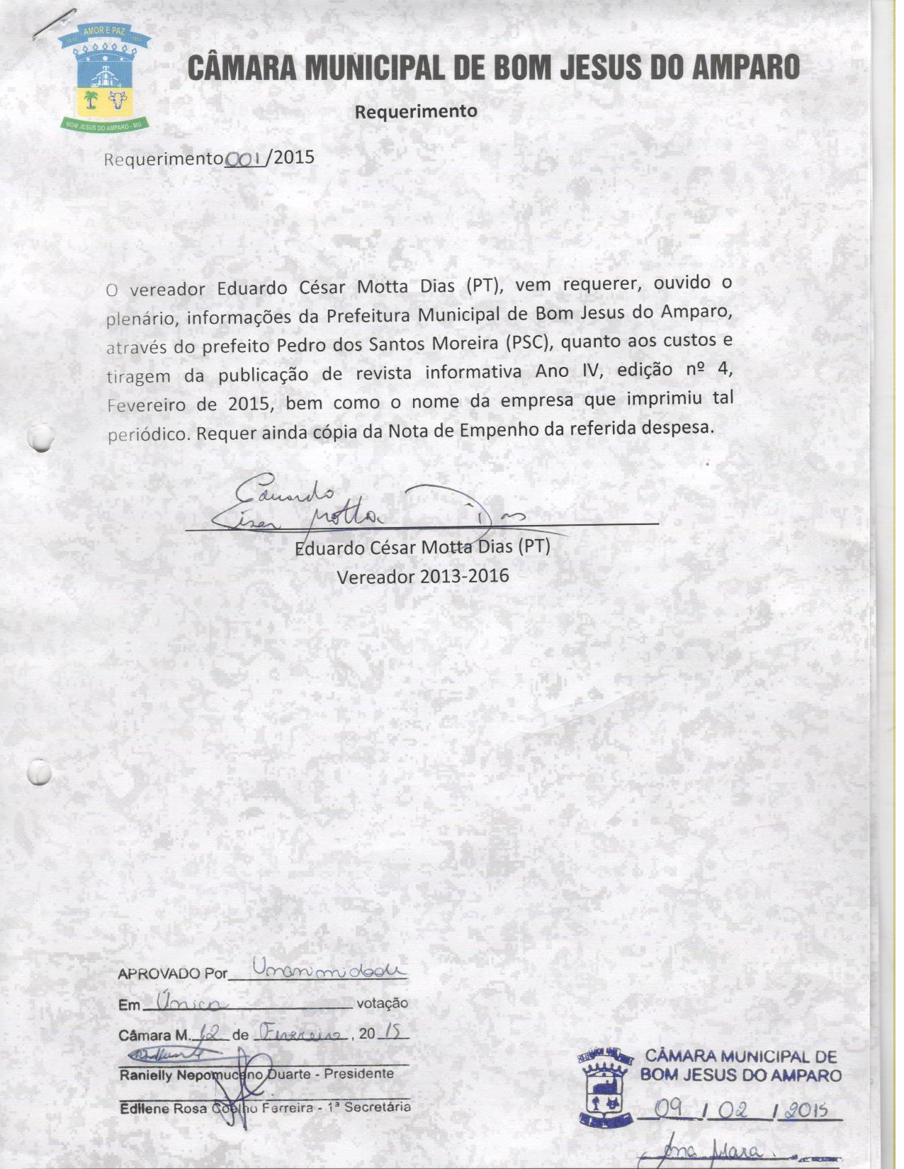 ![]() REQUER INFORMAÇÕES SOBRE OS CUSTOS E TIRAGEM DA PUBLICAÇÃO DA REVISTA INFORMATIVA ANO IV, EDIÇÃO Nº4, FEVEREIRO DE 2015.