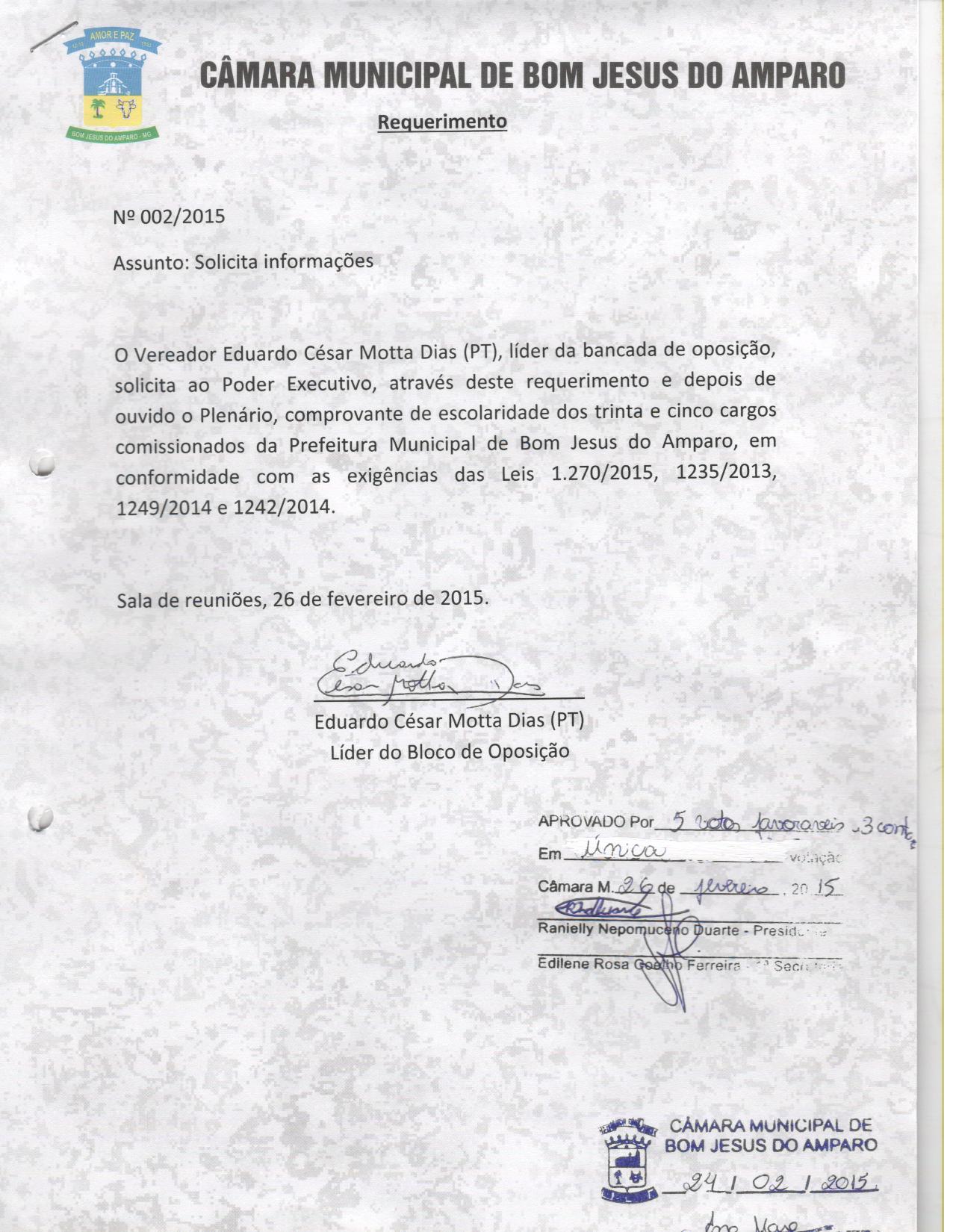 ![]() REQUER COMPROVANTE DE ESCOLARIDADE DOS TRINTA E CINCO CARGOS COMISSIONADOS DA PREFEITURA MUNICIPAL.
