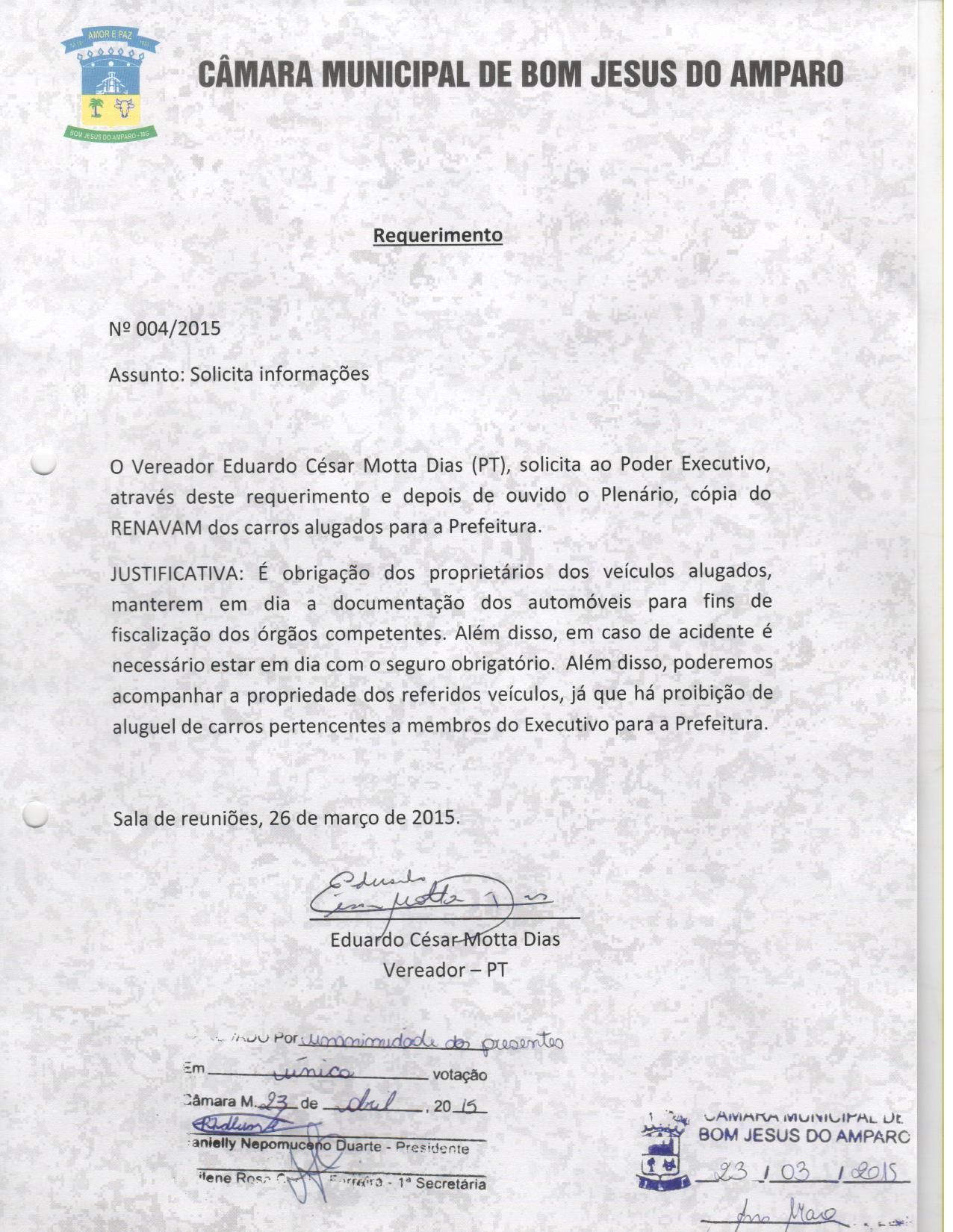 ![]() REQUER CÓPIA DO RENAVAM DOS CARROS ALUGADOS PARA PREFEITURA.