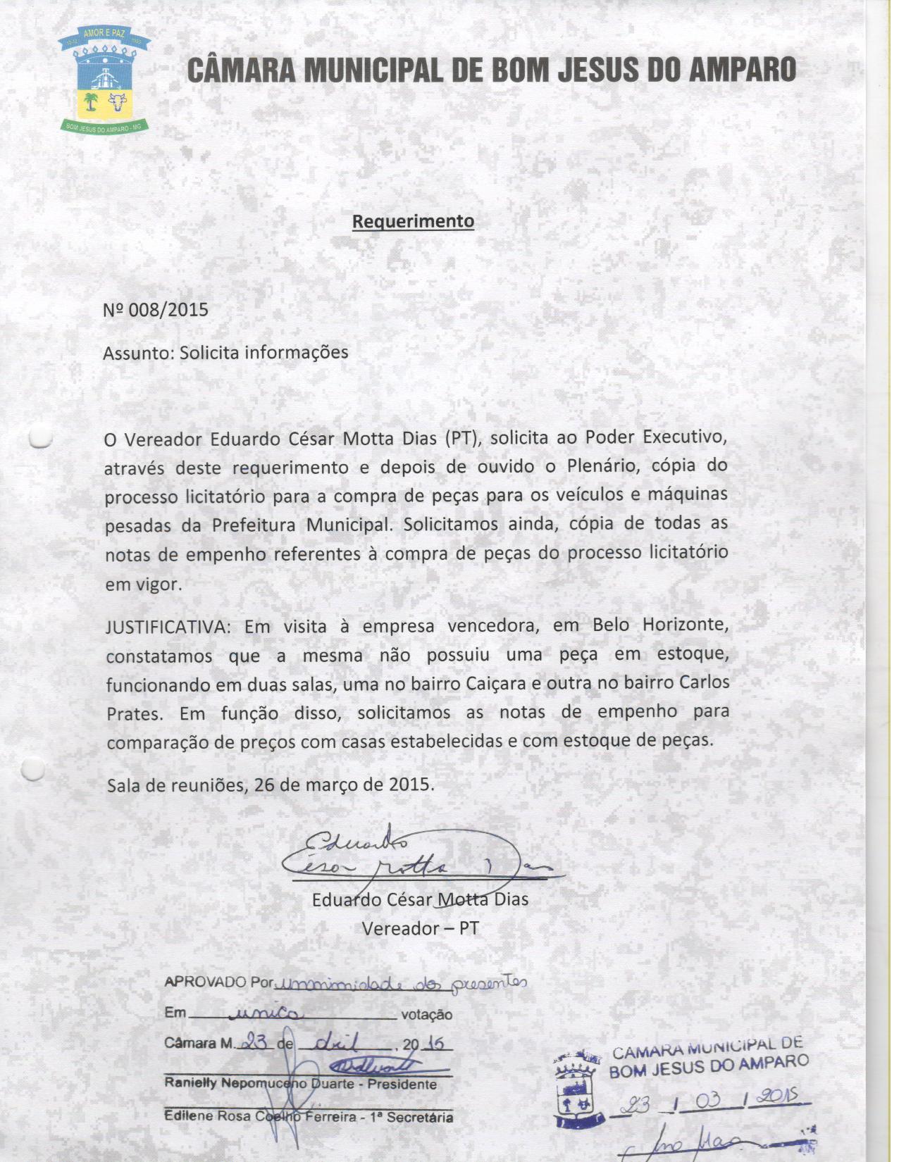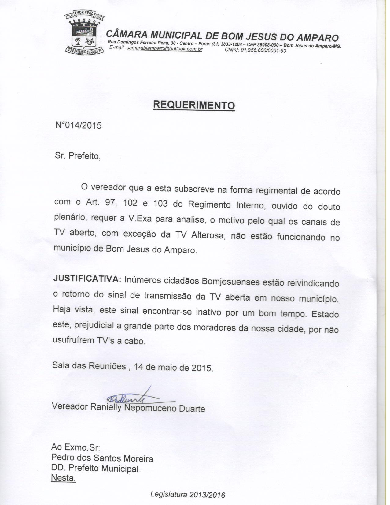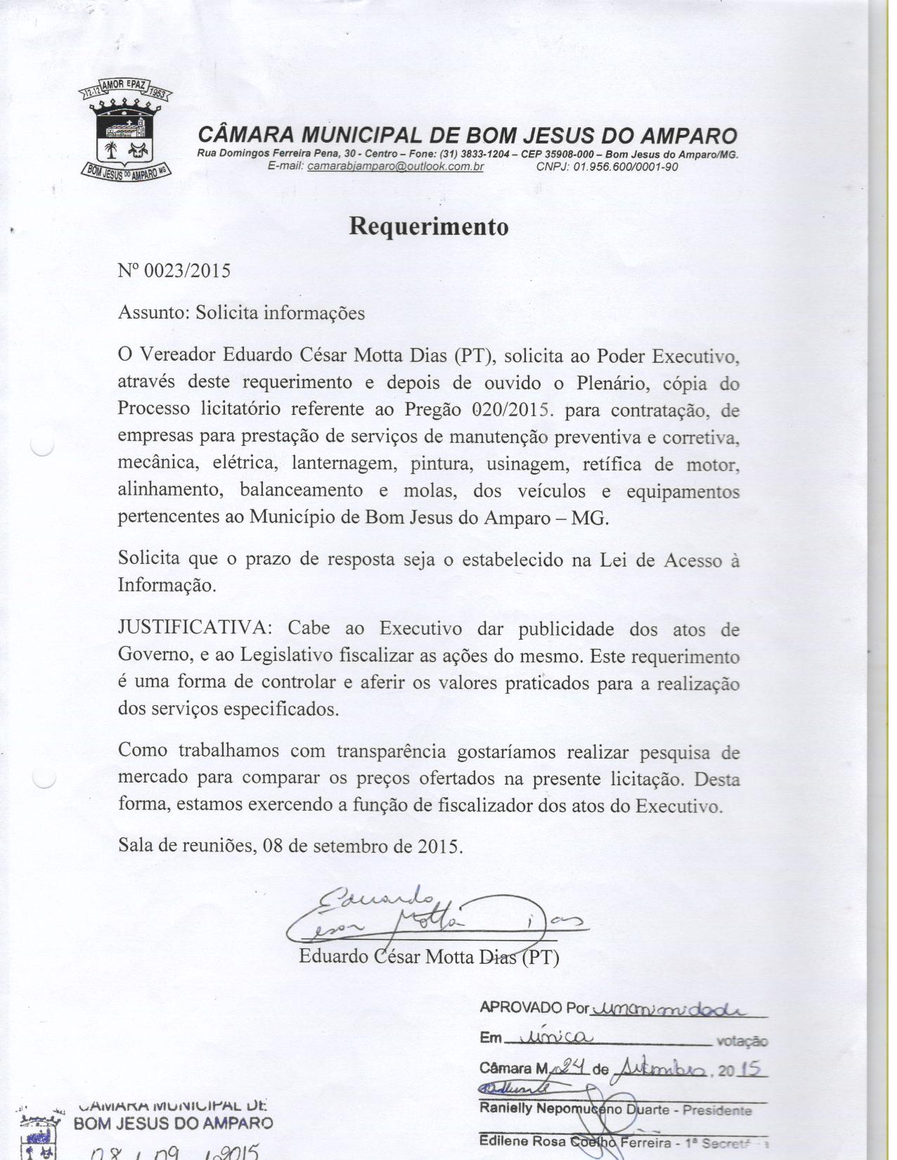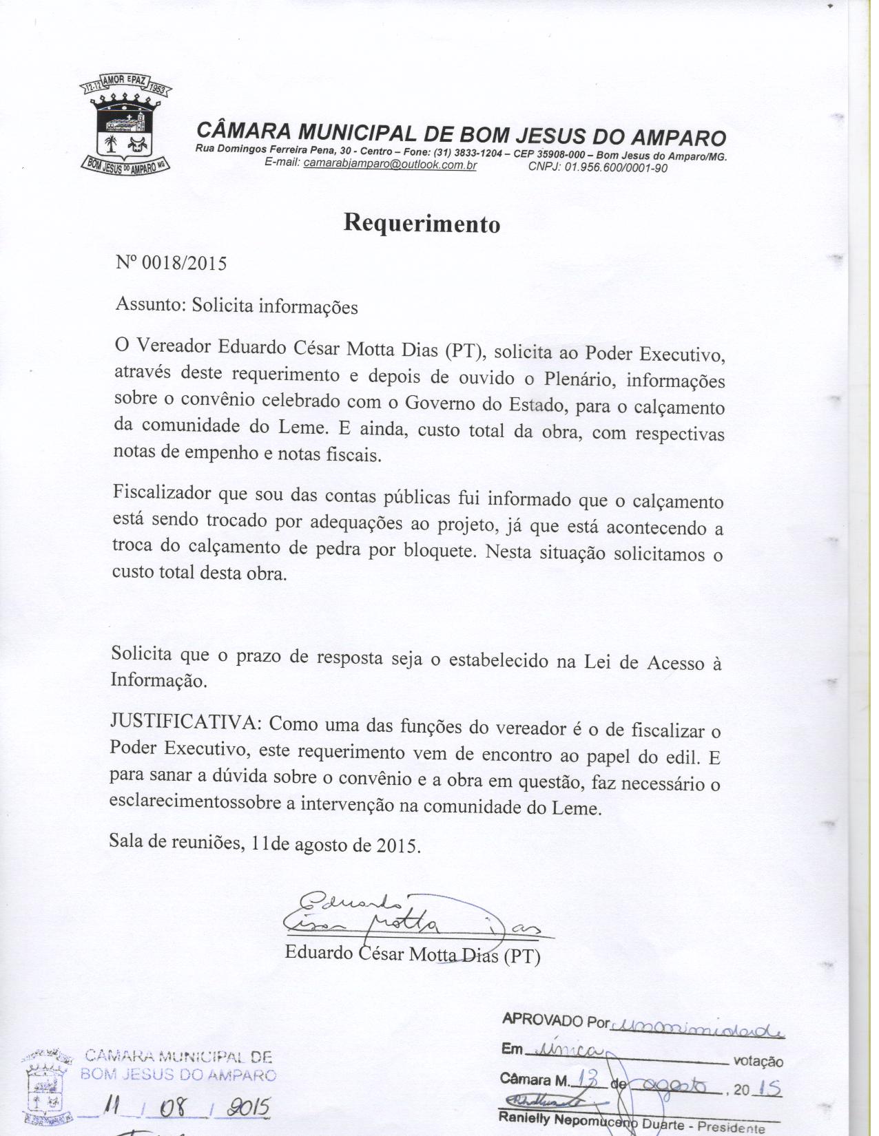![]() REQUER A PRESTAÇÃO DE CONTAS DA XXIII CAVALGADA DE BOM JESUS DO AMPARO DE 2015.
