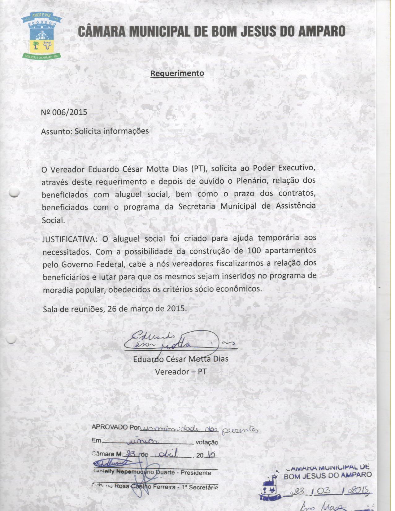 ![]() REQUER RELAÇÃO DE BENEFICIADOS COM O ALUGUEL SOCIAL, BEM COMO OS PRAZOS DOS CONTRATOS.