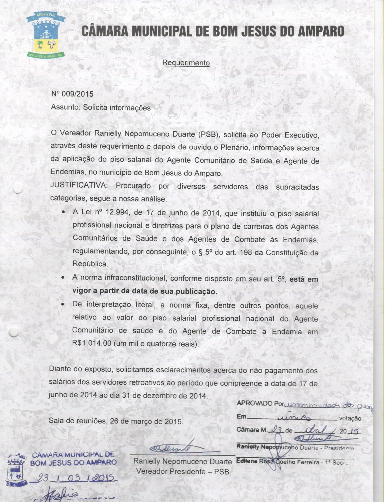 ![]() REQUER INFORMAÇÕES COM RELAÇÃO A APLICAÇÃO DO PISO SALARIAL DO AGENTE COMUNITÁRIO DE SAÚDE E AGENTE DE EPIDEMIAS NESTE MUNICÍPIO.