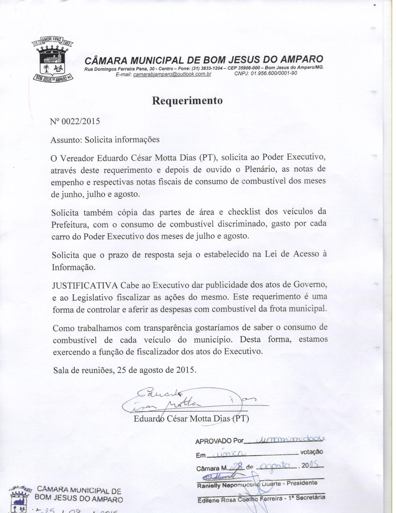 ![]() REQUER NOTAS DE EMPENHOS E RESPECTIVOS COMPROVANTES DE CONSUMO DE COMBUSTÍVEIS NOS MESES DE JUNHO, JULHO E AGOSTO.