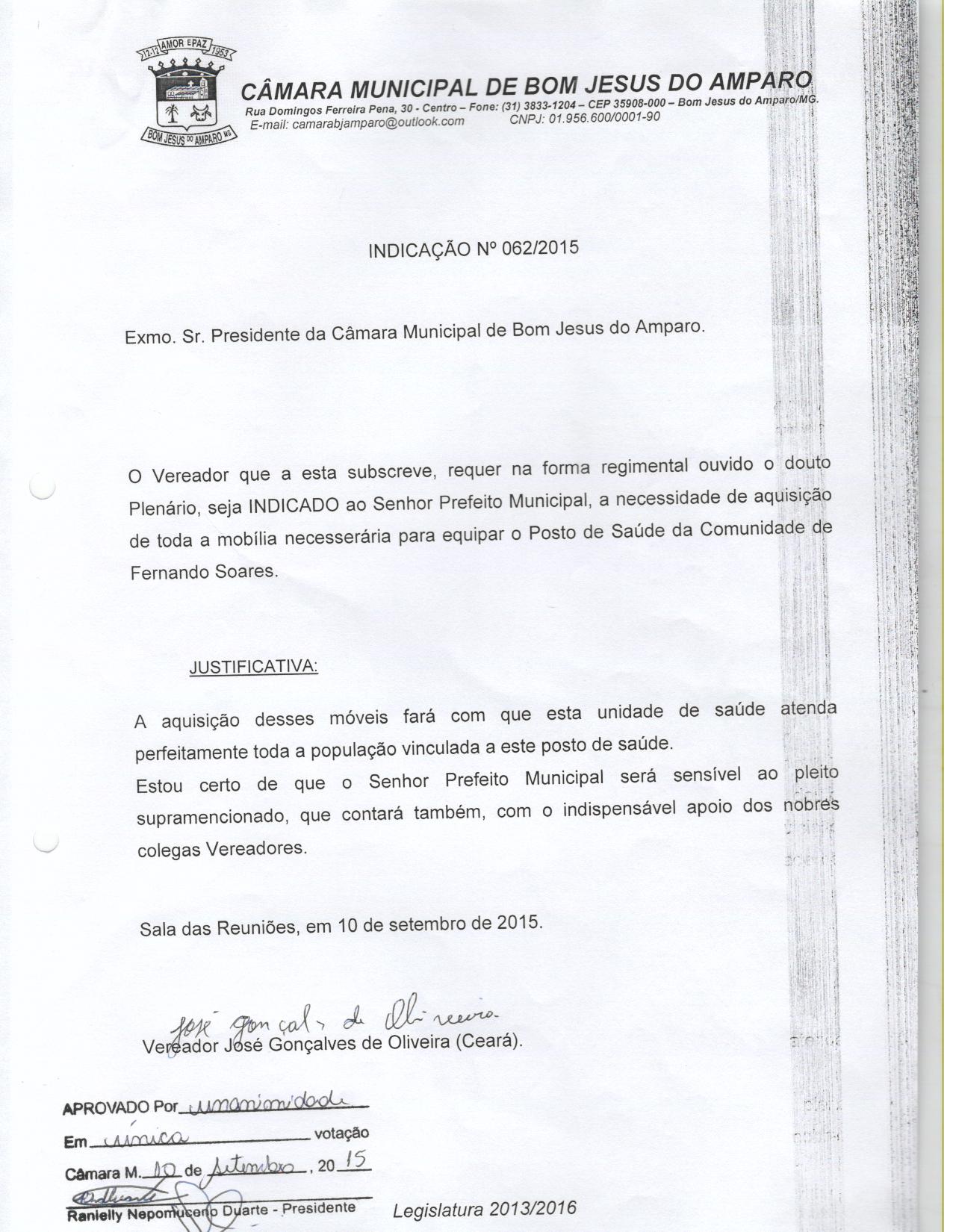 ![]() NECESSIDADE DE MOBILIAR O POSTO DE SAÚDE DA COMUNIDADE DE FERNANDO SOARES