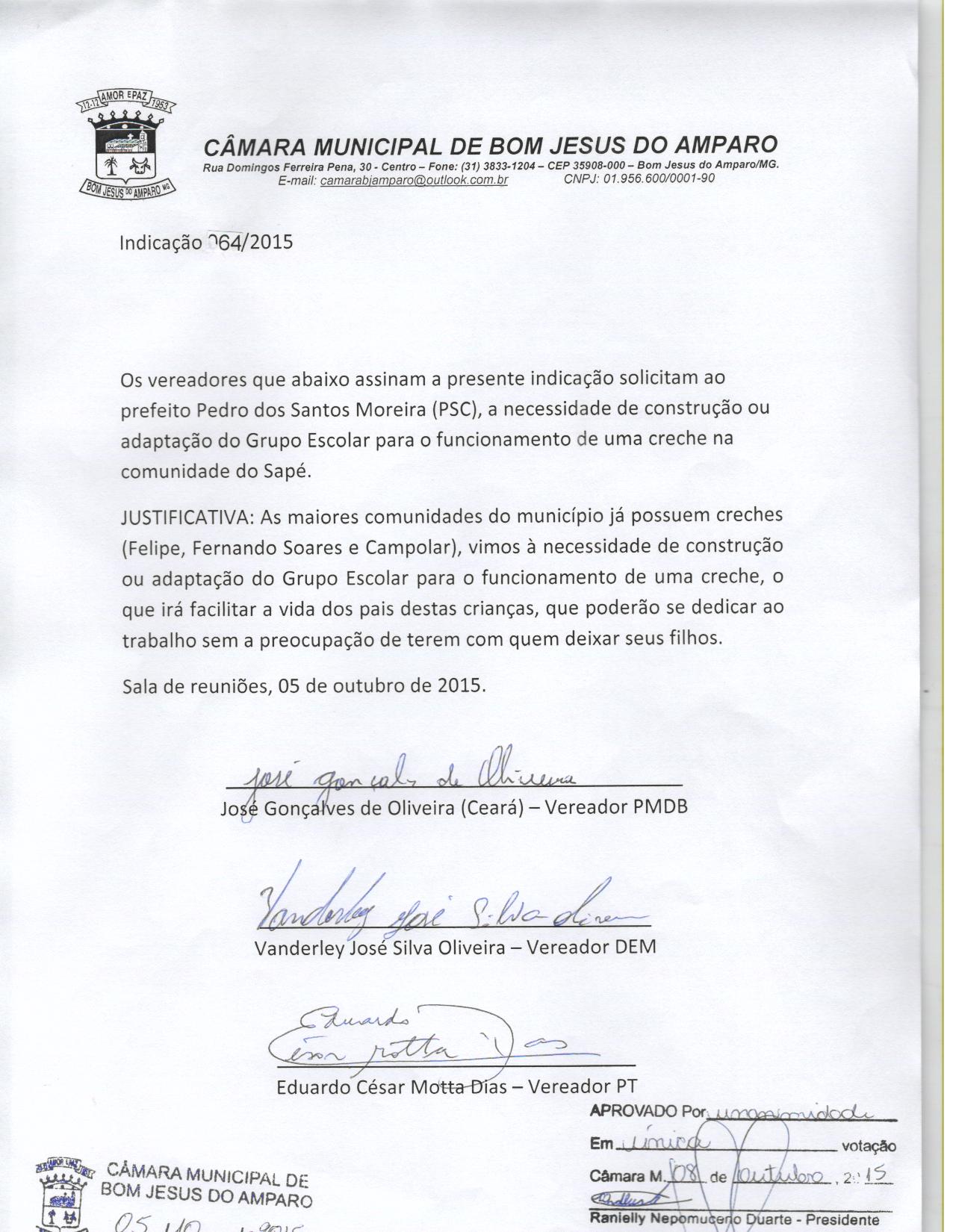 ![]() NECESSIDADE DE CONSTRUÇÃO OU ADAPTAÇÃO DO GRUPO ESCOLAR PARA O FUNCIONAMENTO DE UMA CRECHE NA COMUNIDADE DO SAPÉ.