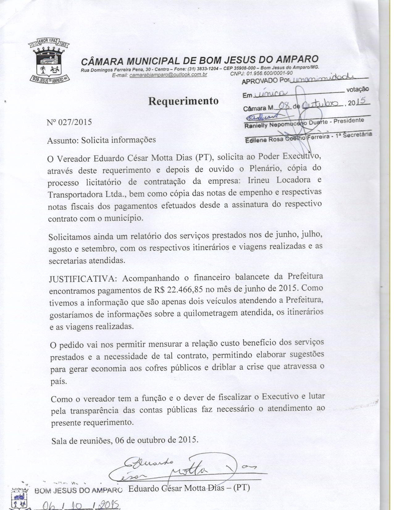 REQ 27/2015 - Requerimento