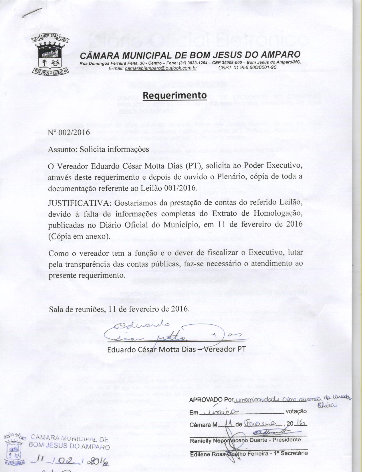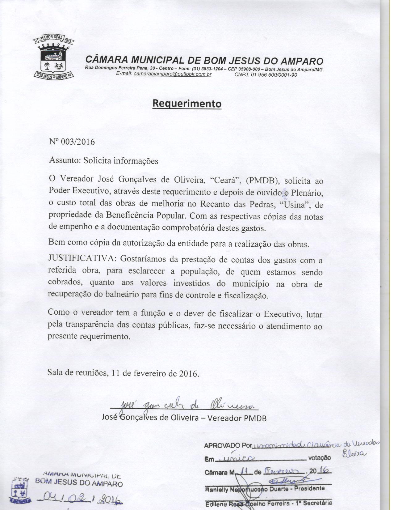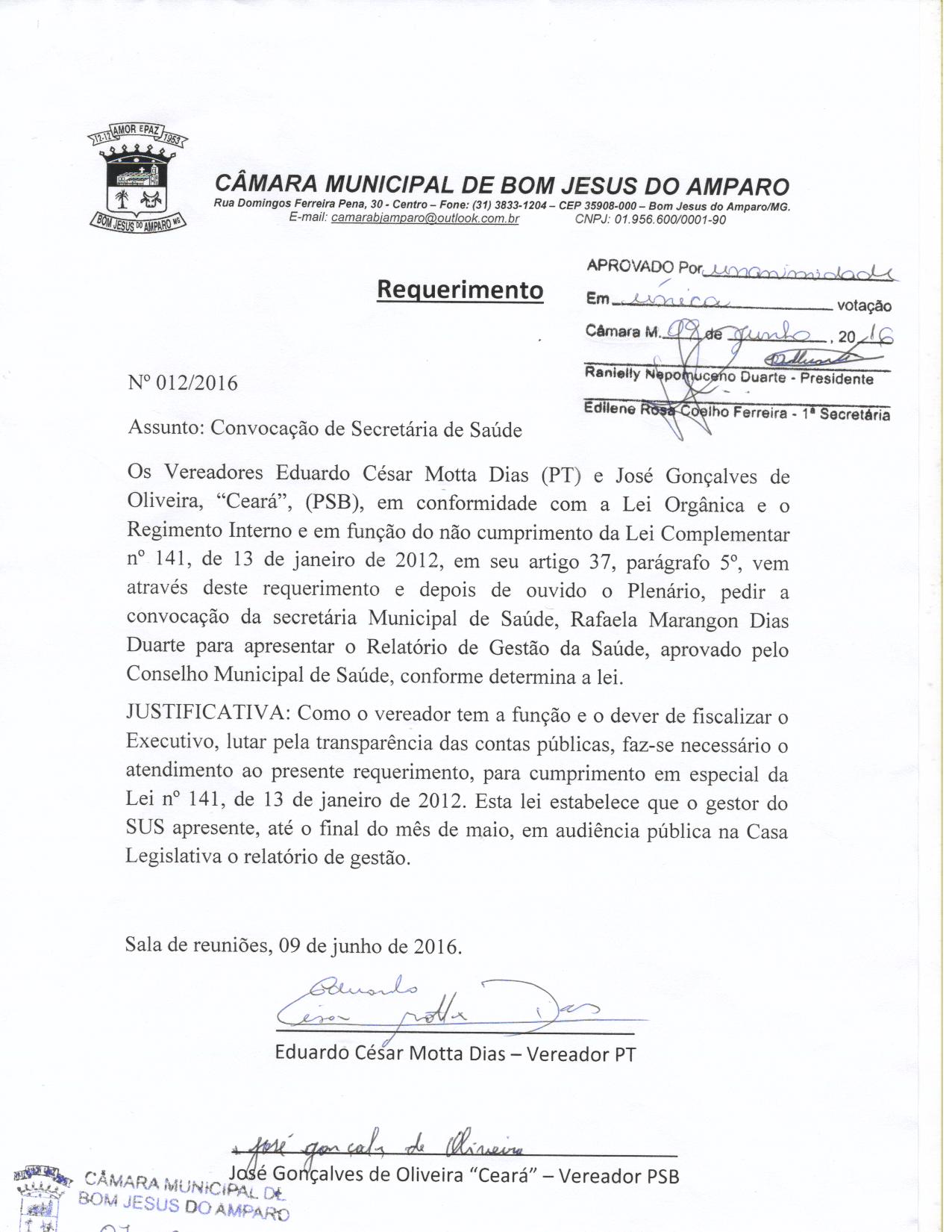 REQ 12/2016 - Requerimento