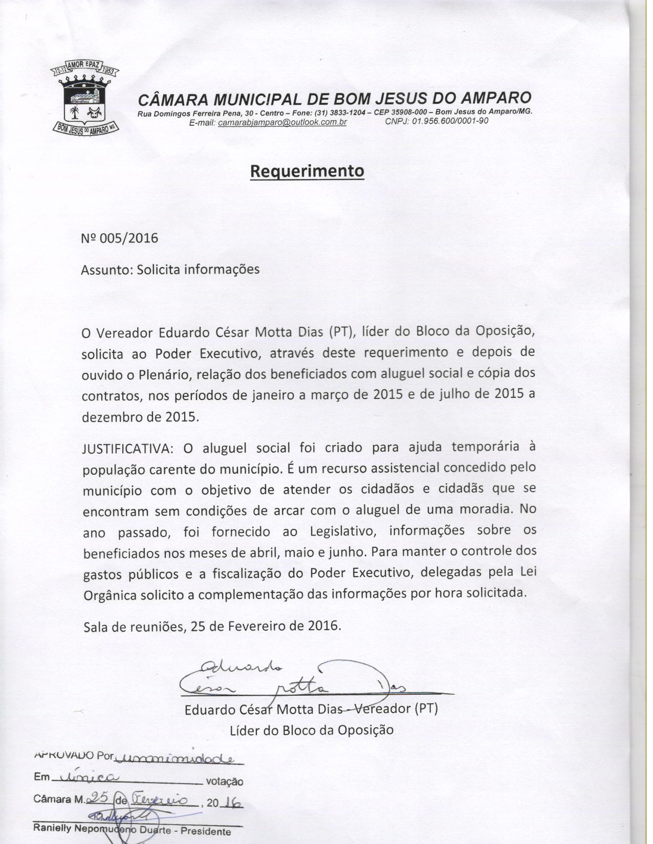 REQ 5/2016 - Requerimento