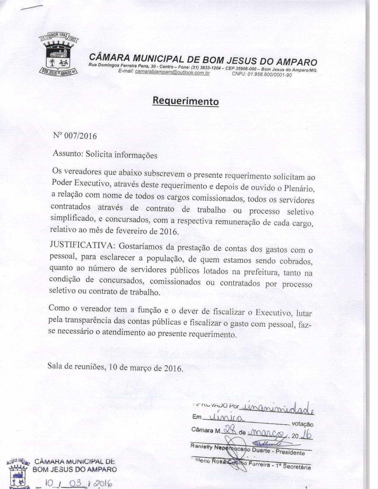 REQ 7/2016 - Requerimento