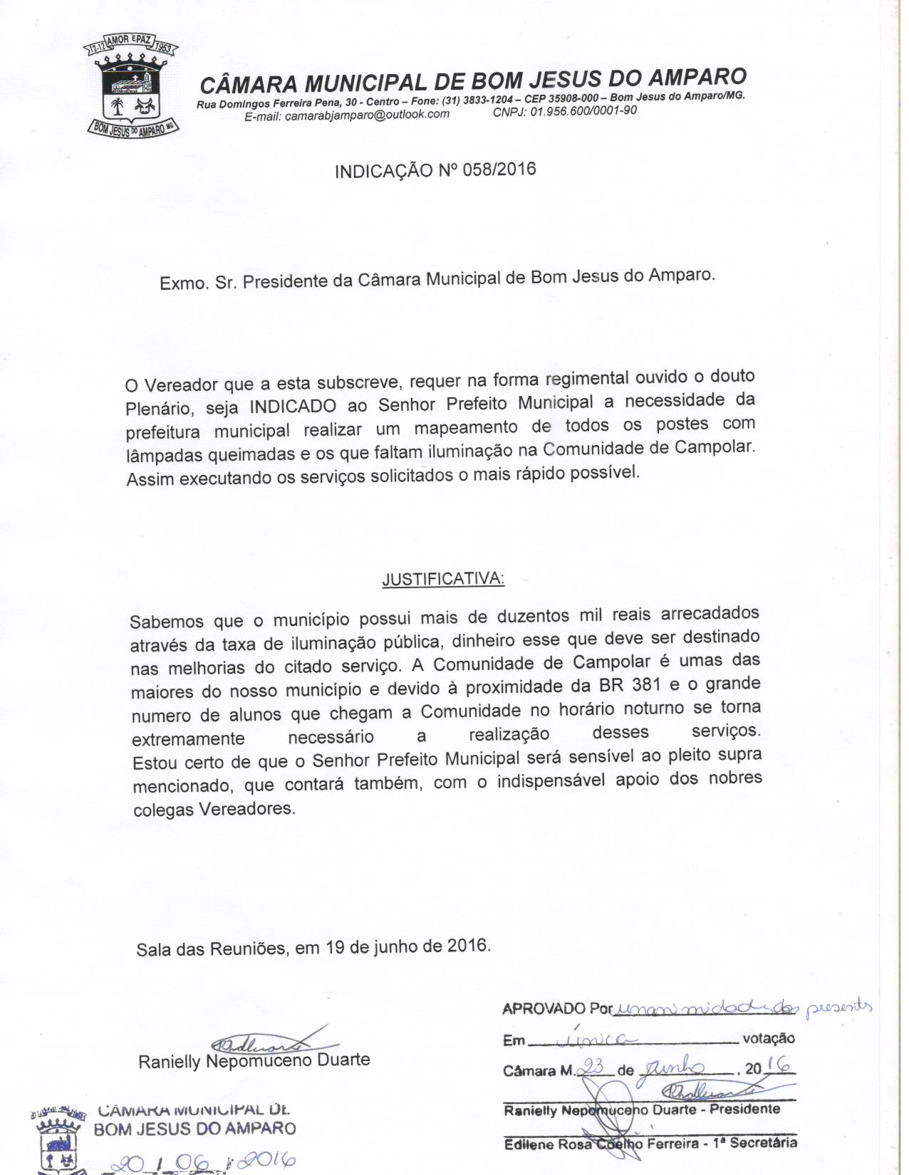 IND 58/2016 - Indicação