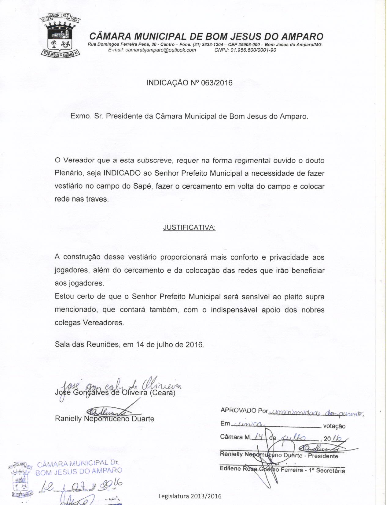 IND 63/2016 - Indicação