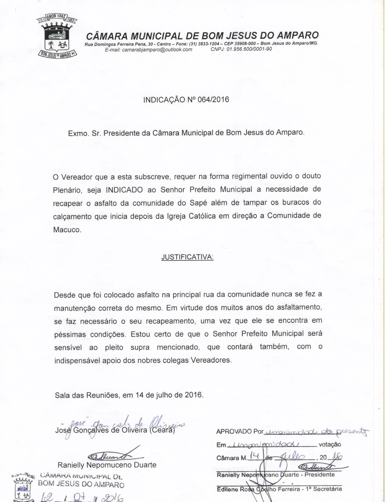 IND 64/2016 - Indicação