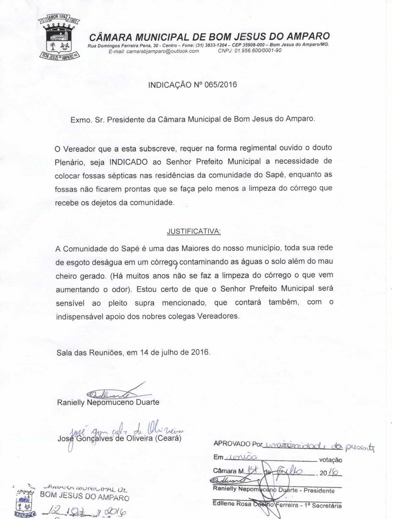 IND 65/2016 - Indicação
