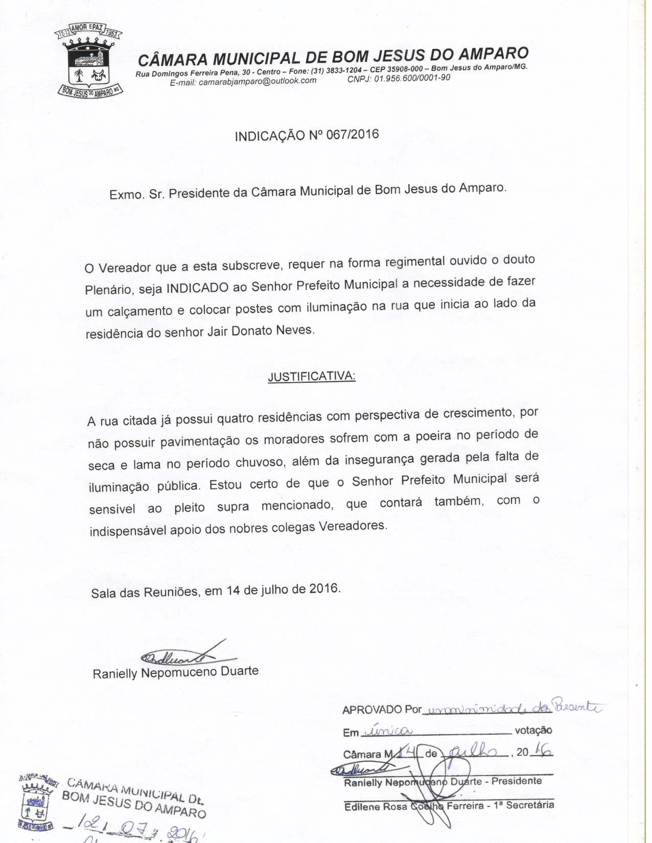 IND 67/2016 - Indicação