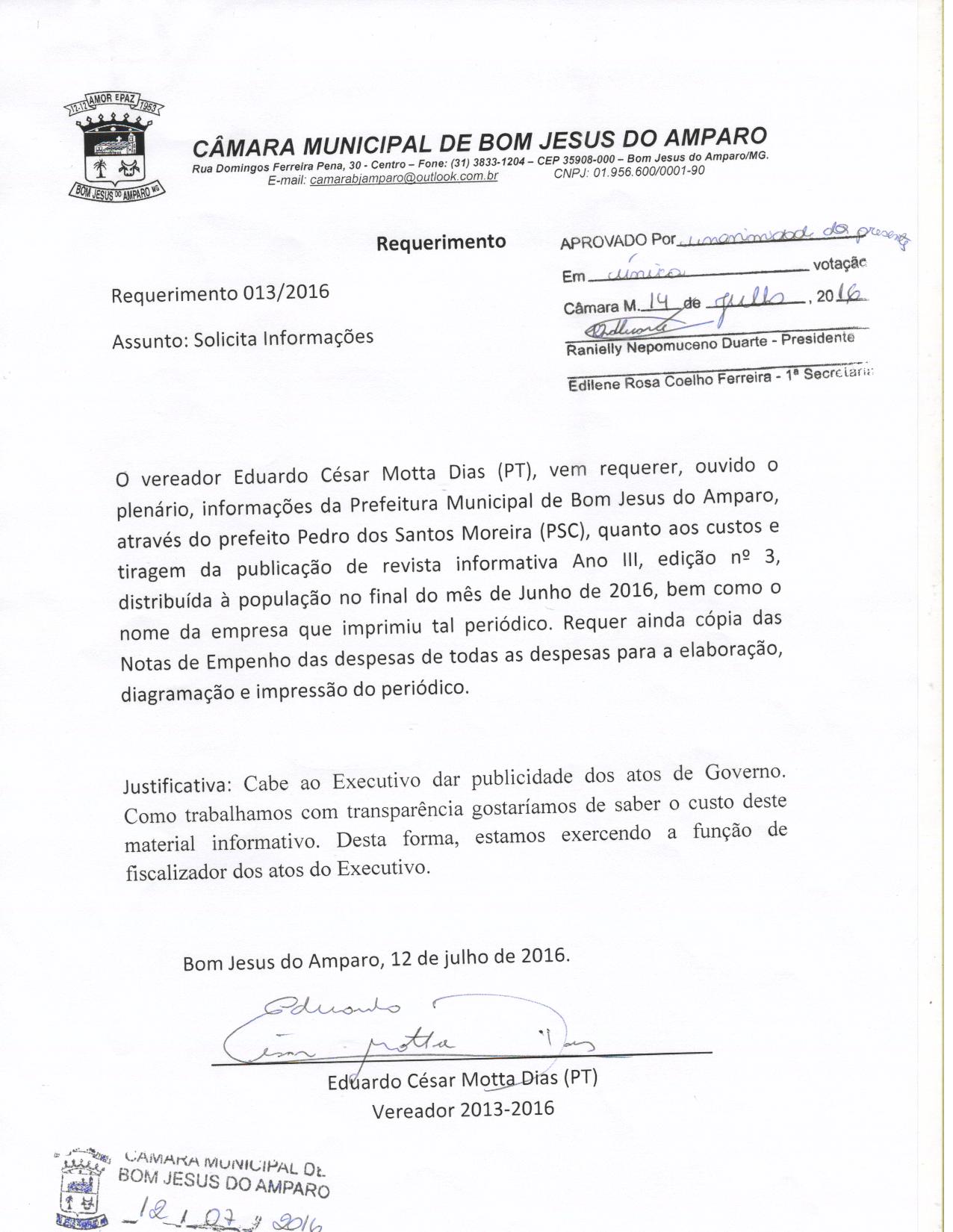 REQ 13/2016 - Requerimento