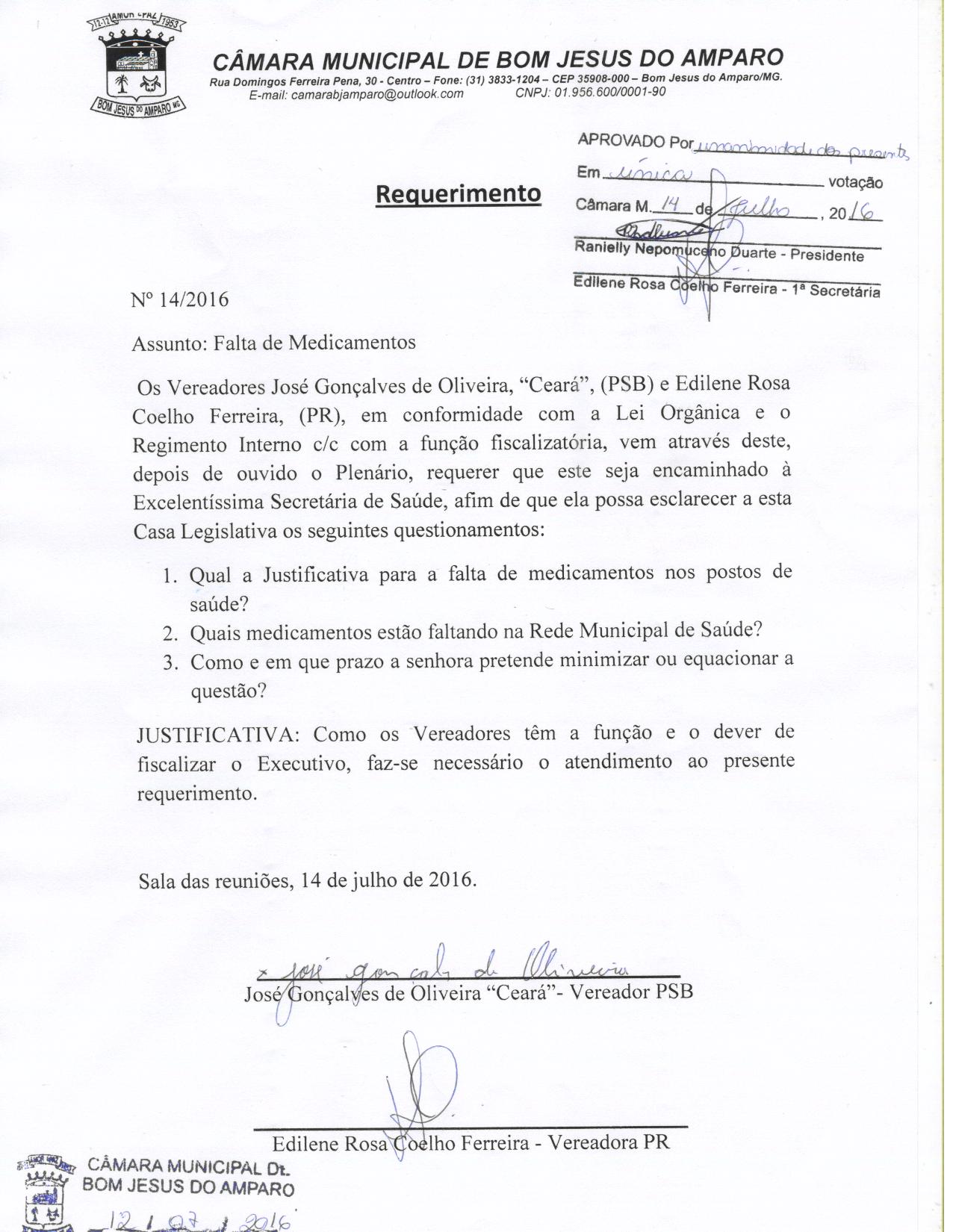 REQ 14/2016 - Requerimento