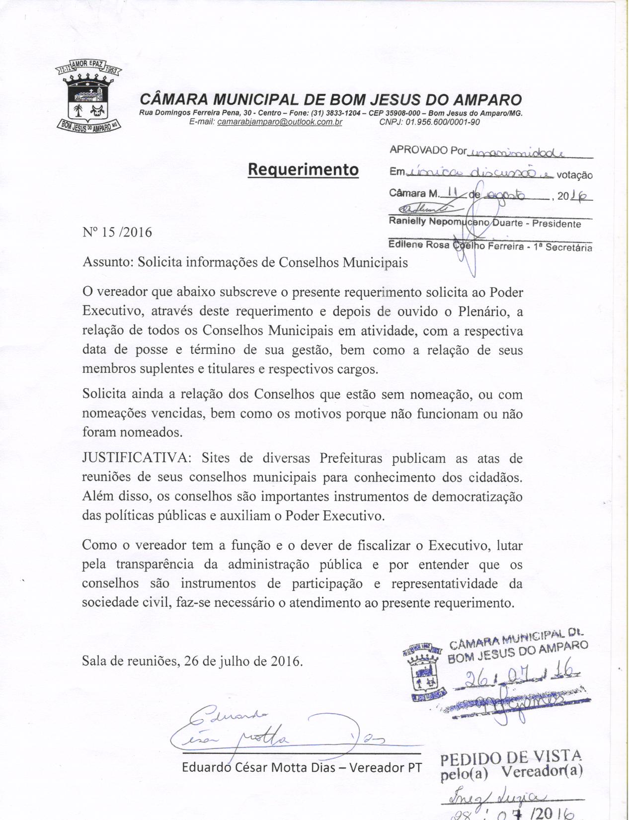 REQ 15/2016 - Requerimento