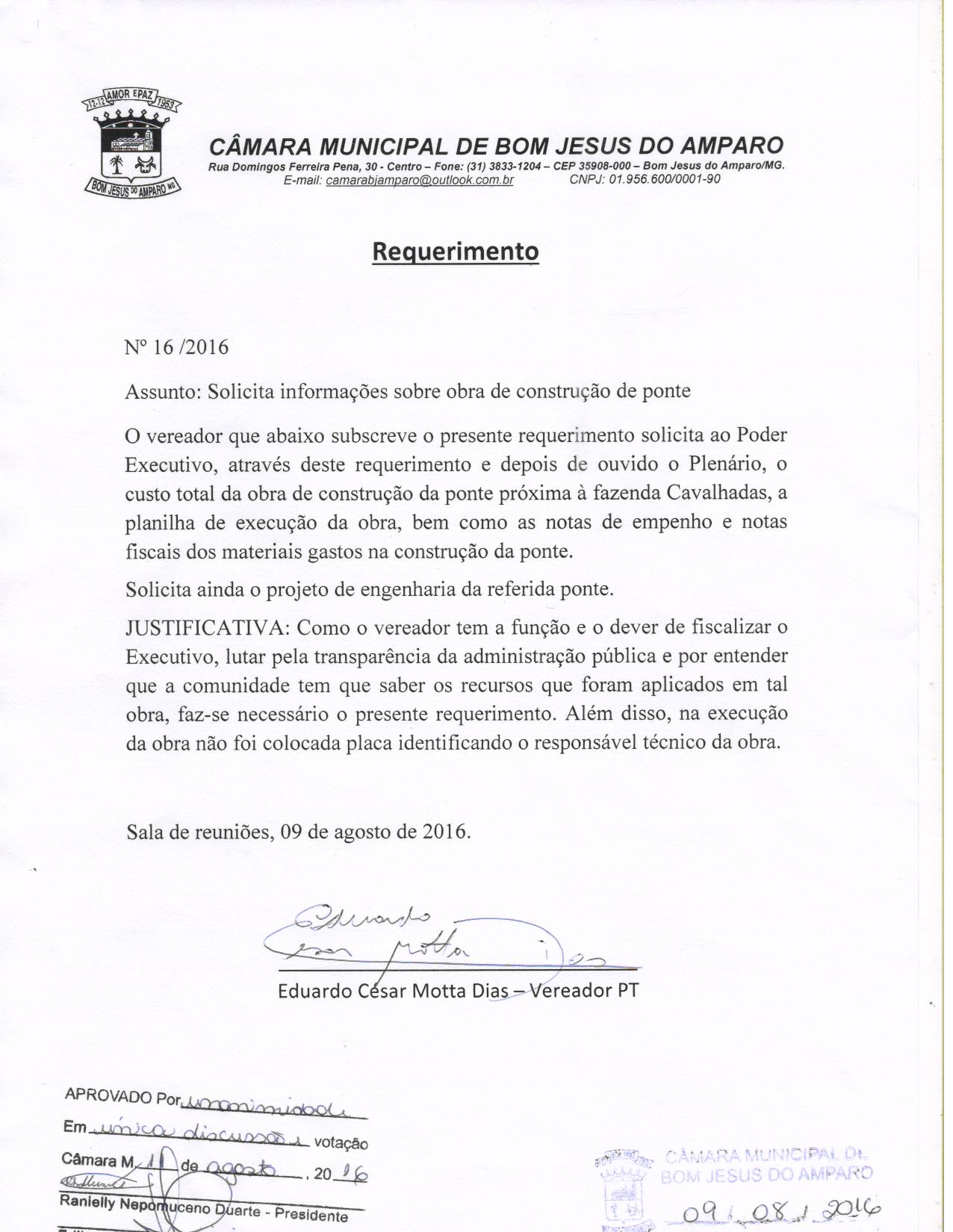 REQ 16/2016 - Requerimento