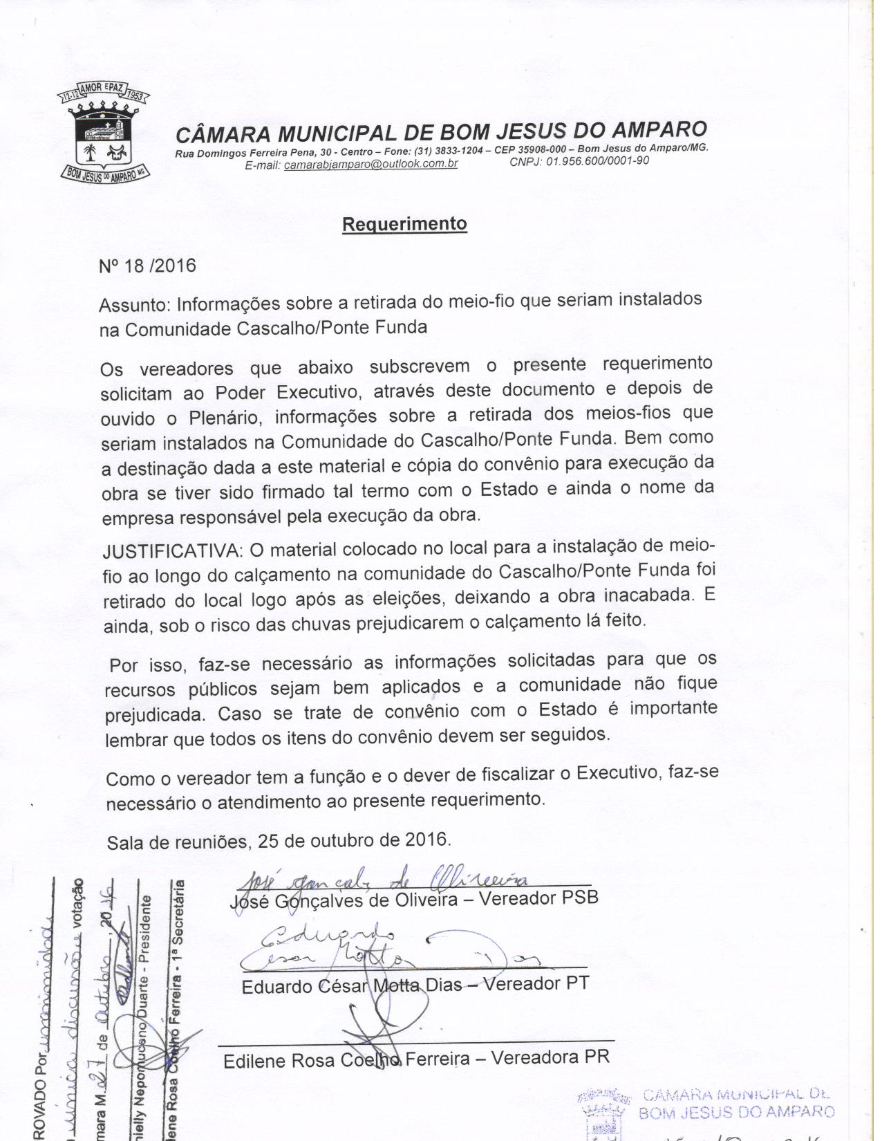 REQ 18/2016 - Requerimento