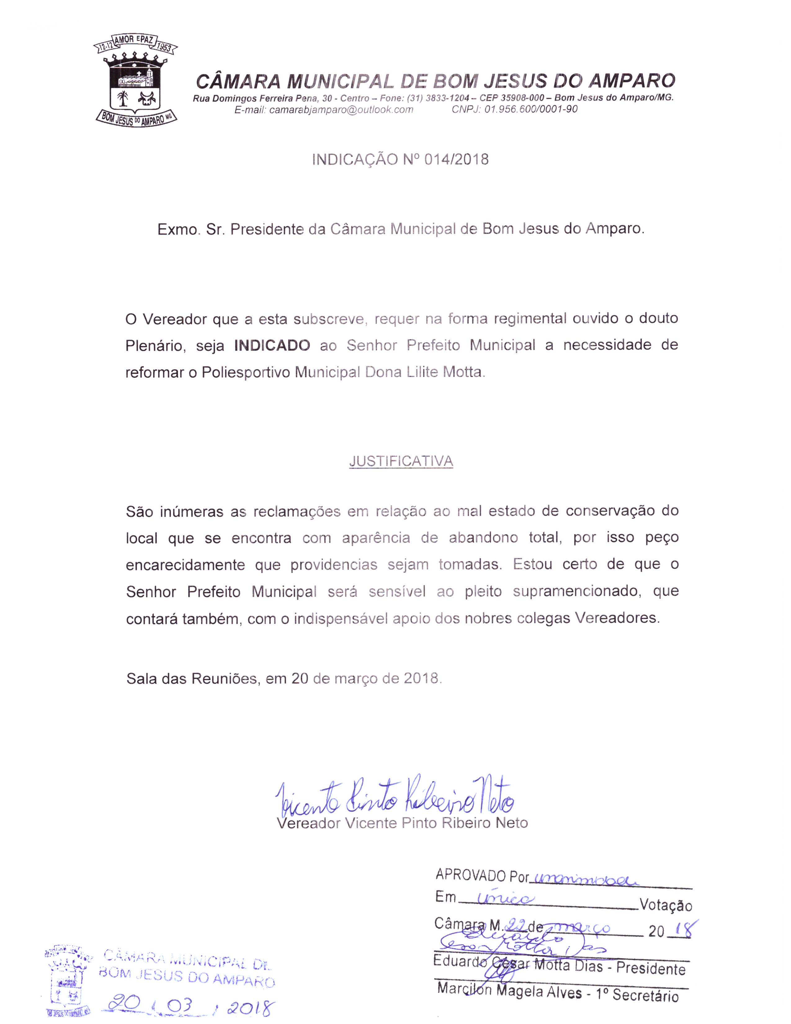 Protocolo: 14/2018, Data Protocolo: - Horário: