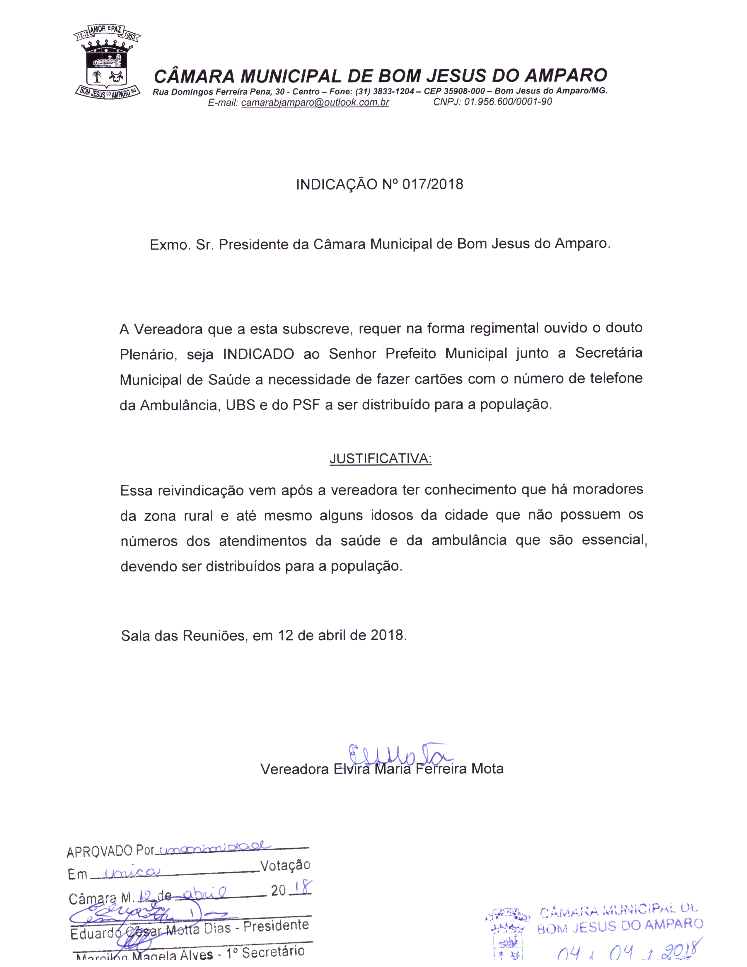 NECESSIDADE DE FAZER CARTÕES COM O NUMERO DA AMBULÂNCIA, UBS, E DO PSF PARA SER DISTRIBUÍDO À POPULAÇÃO.
