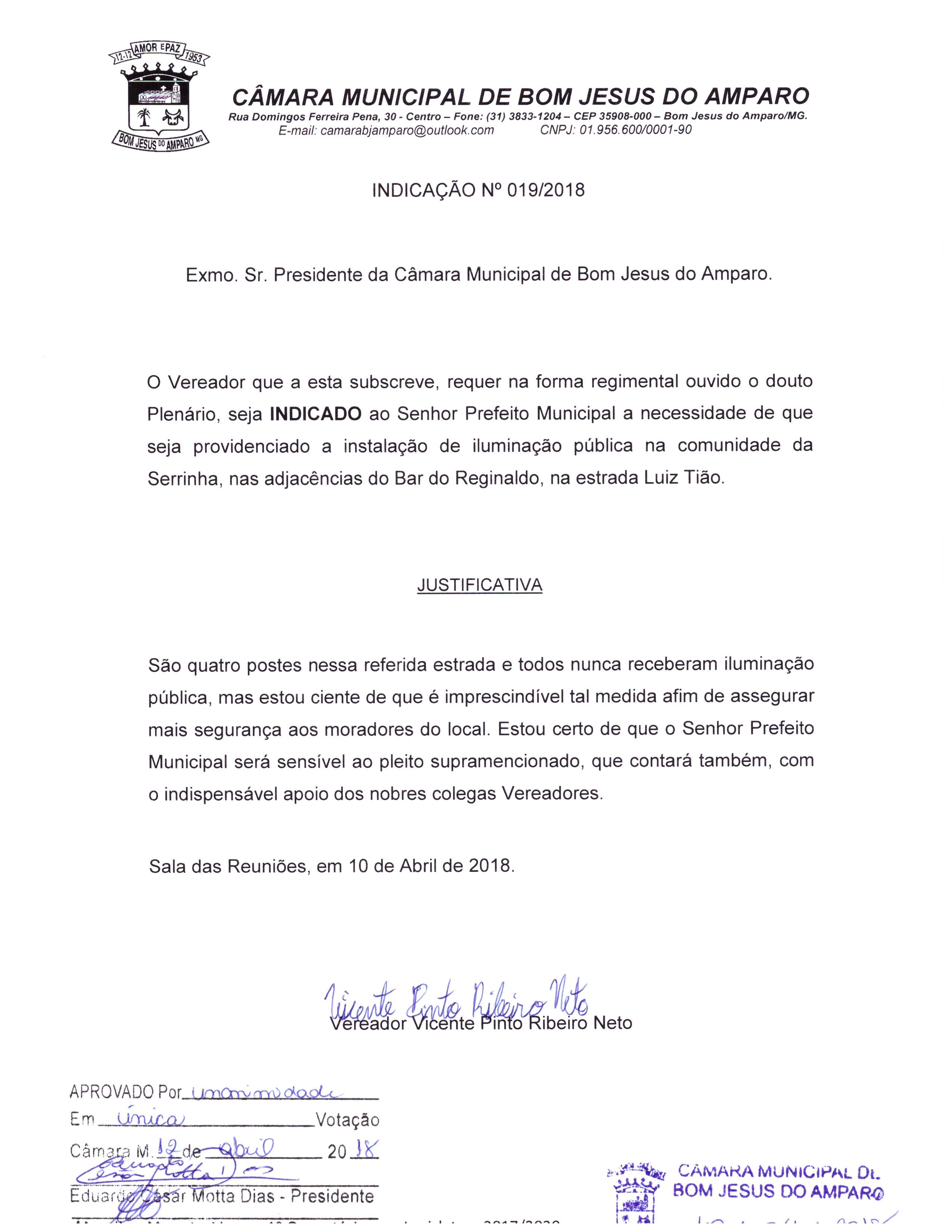 Protocolo: 19/2018, Data Protocolo: - Horário: