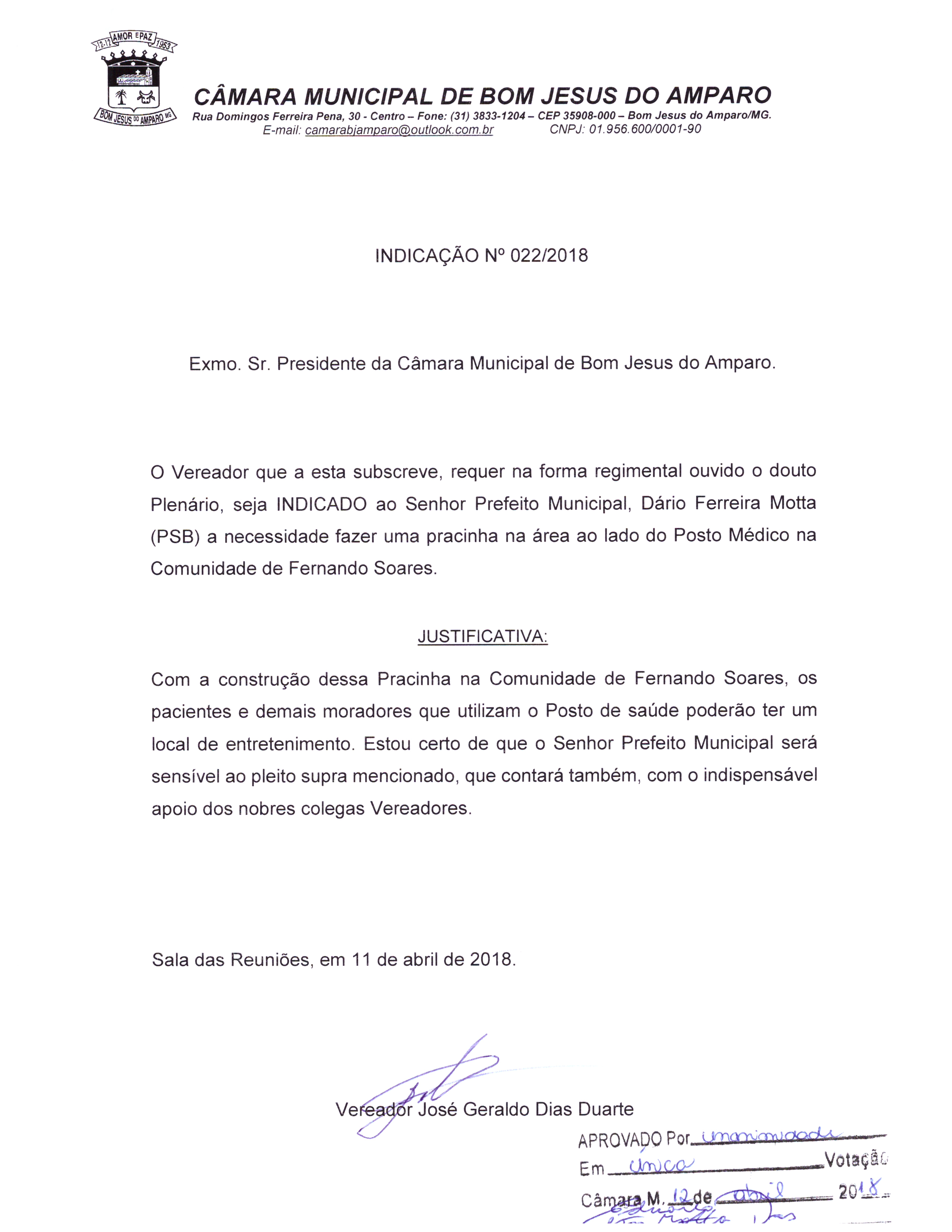 Protocolo: 22/2018, Data Protocolo: - Horário: