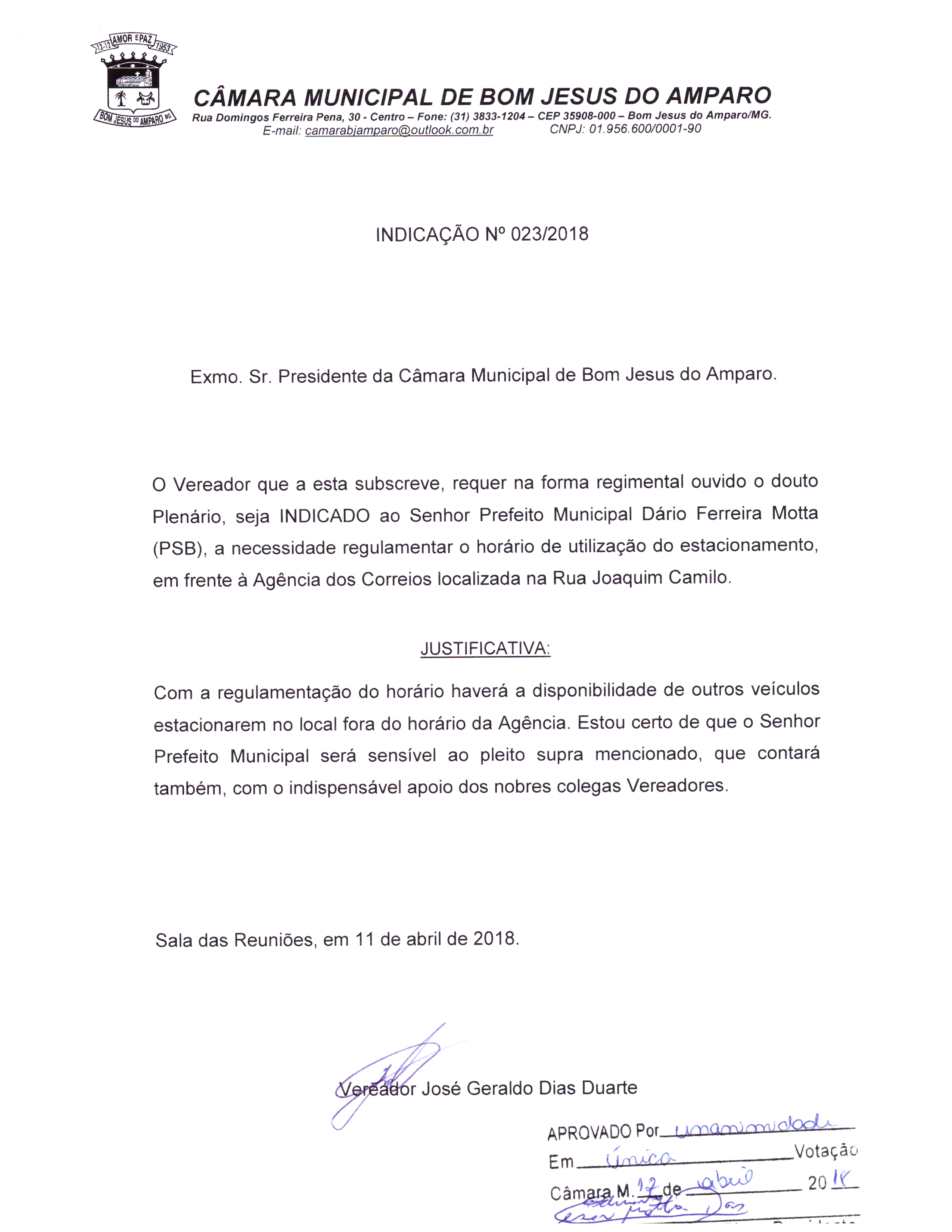 Protocolo: 23/2018, Data Protocolo: - Horário: