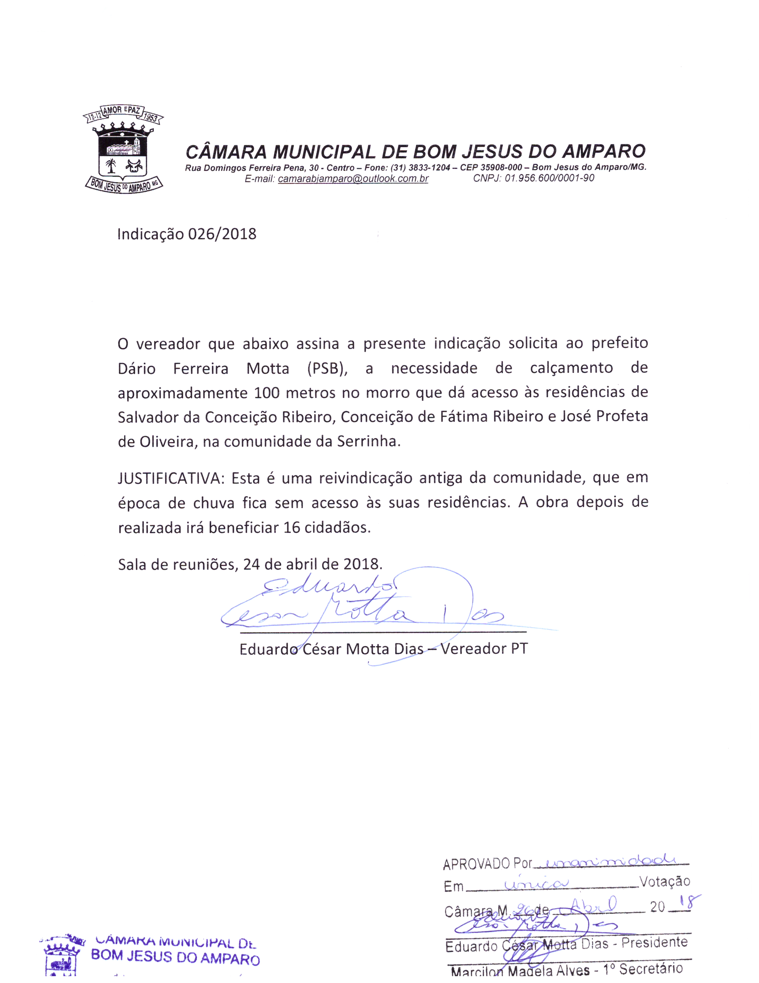 Protocolo: 26/2018, Data Protocolo: - Horário: