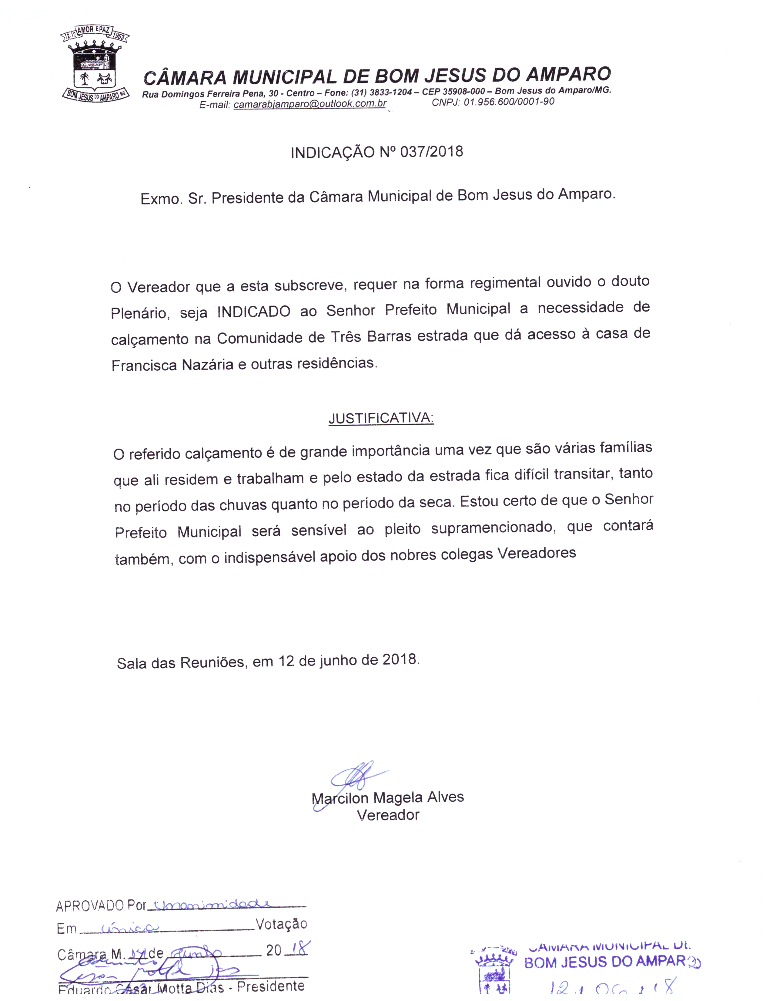 Protocolo: 37/2018, Data Protocolo: - Horário: