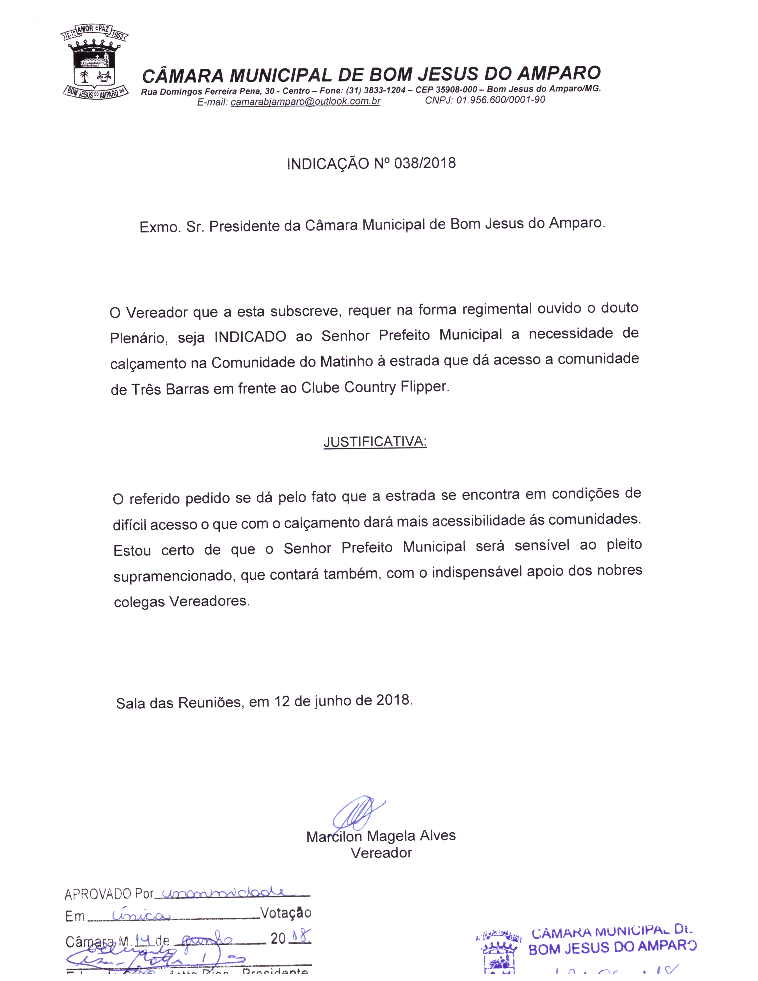 Protocolo: 38/2018, Data Protocolo: - Horário: