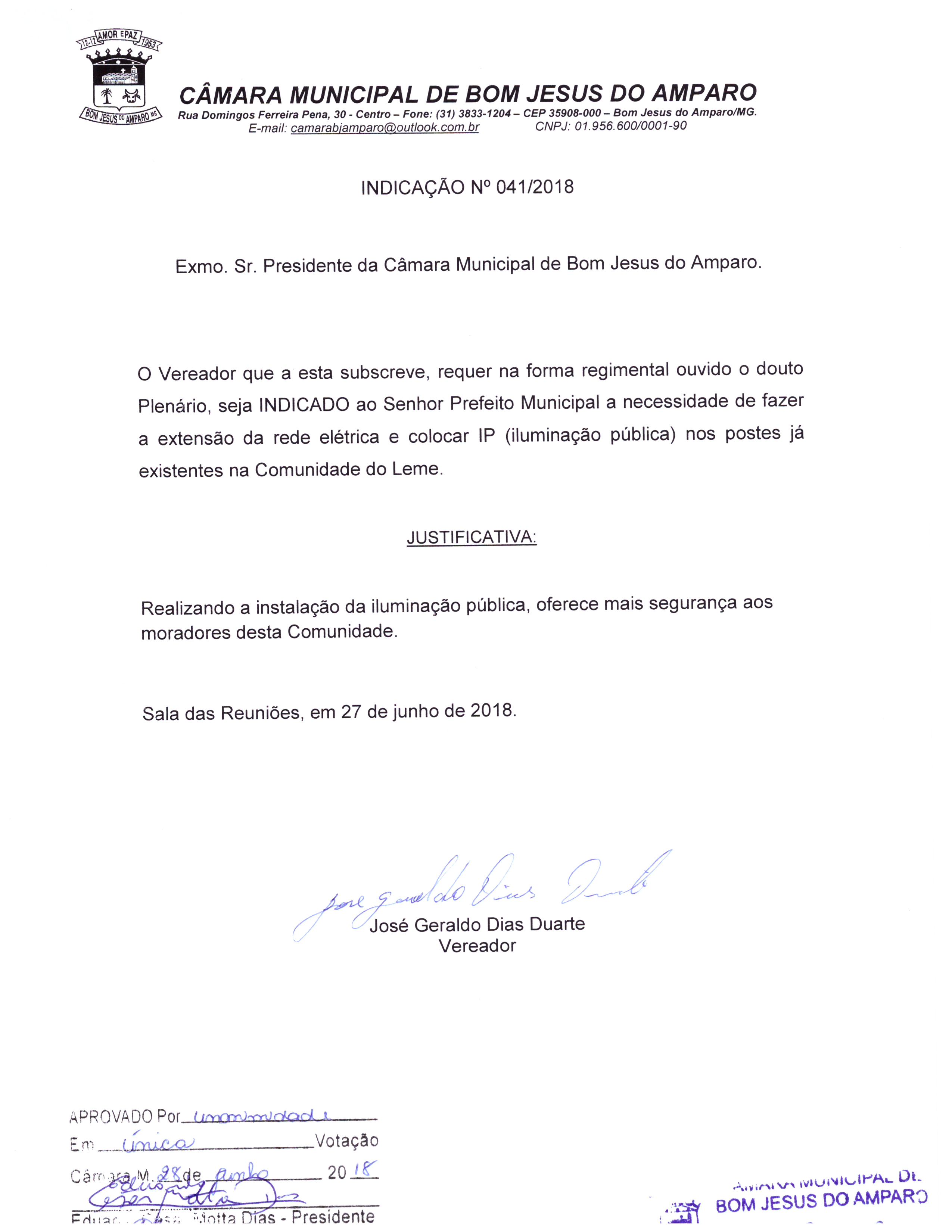 Protocolo: 41/2018, Data Protocolo: - Horário: