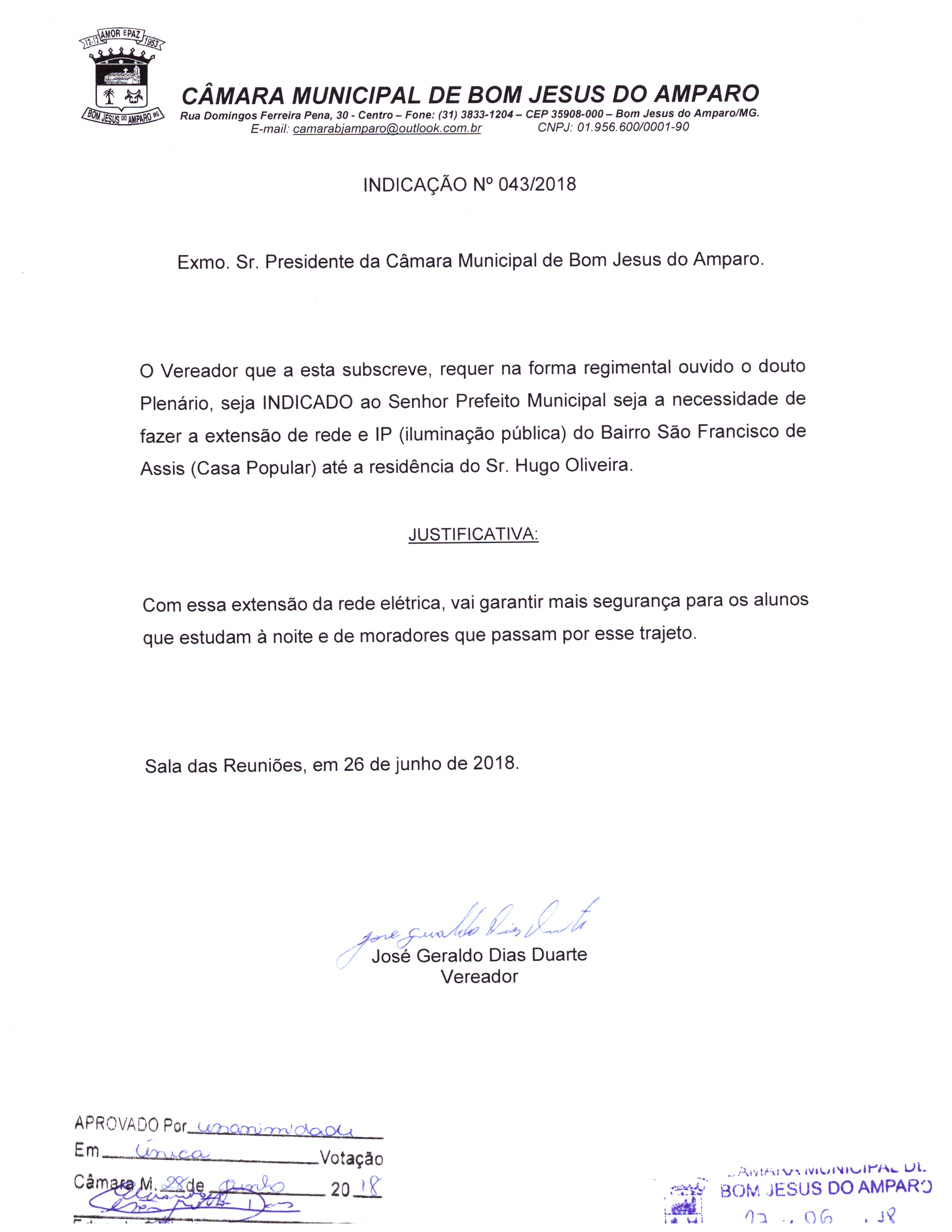 Protocolo: 43/2018, Data Protocolo: - Horário: