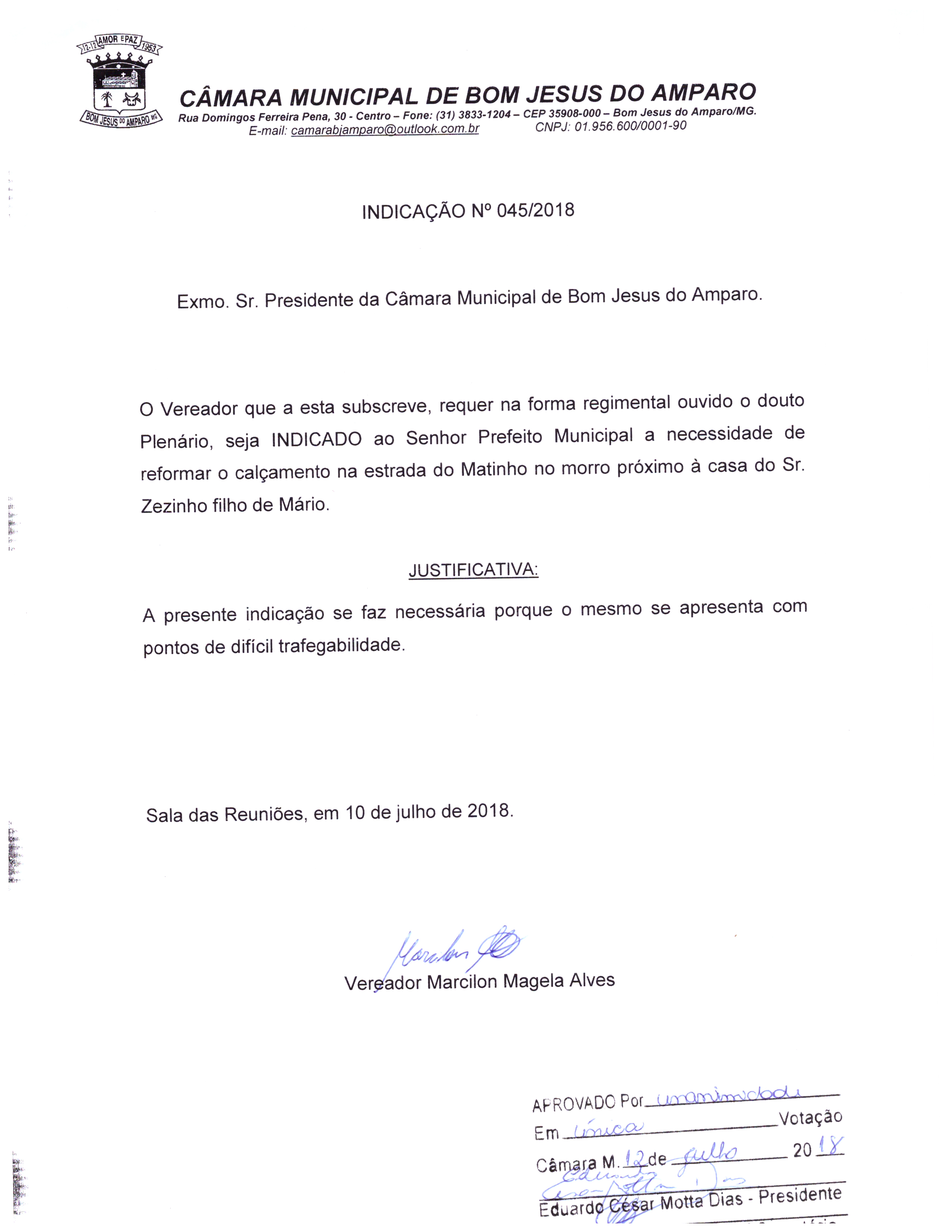 Protocolo: 45/2018, Data Protocolo: - Horário: