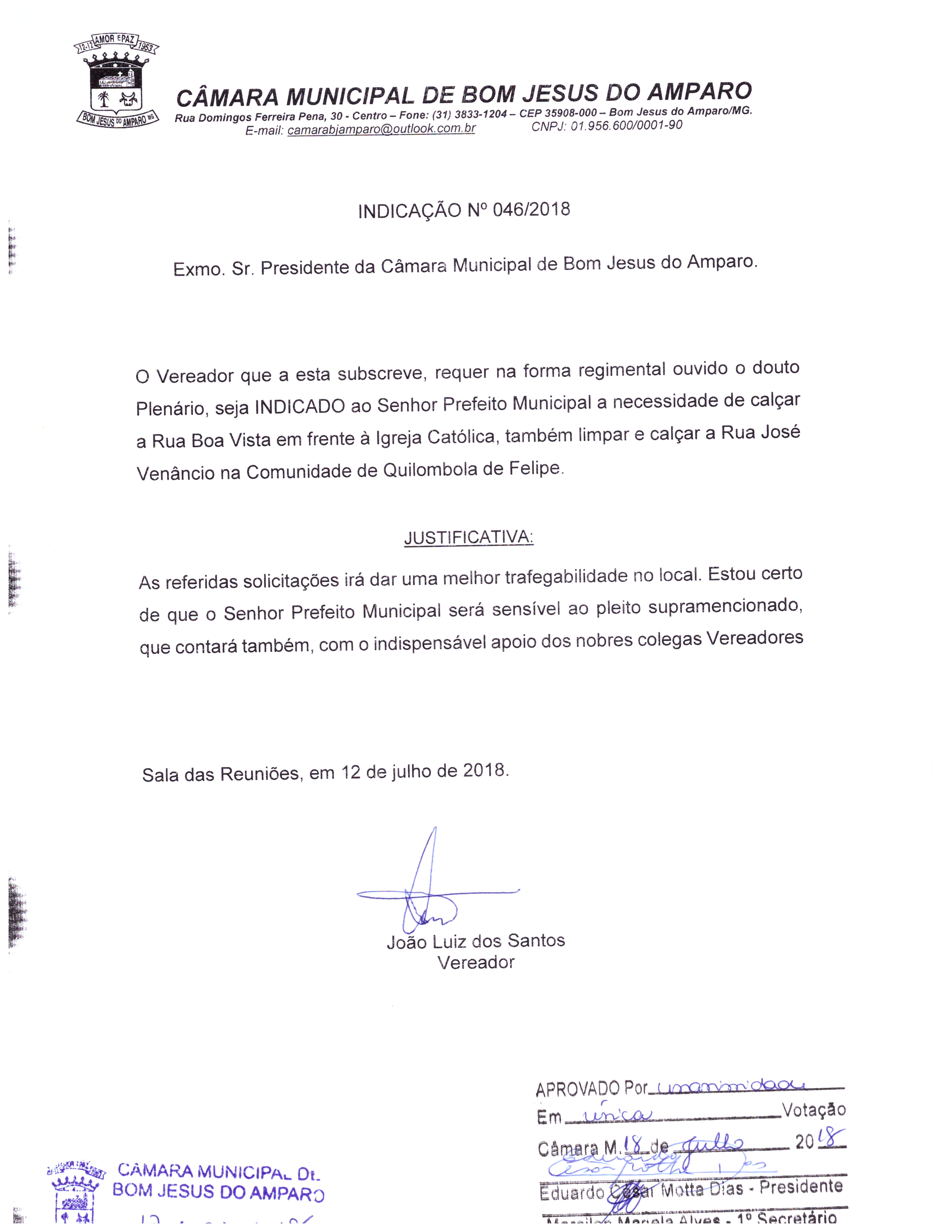 Protocolo: 46/2018, Data Protocolo: - Horário: