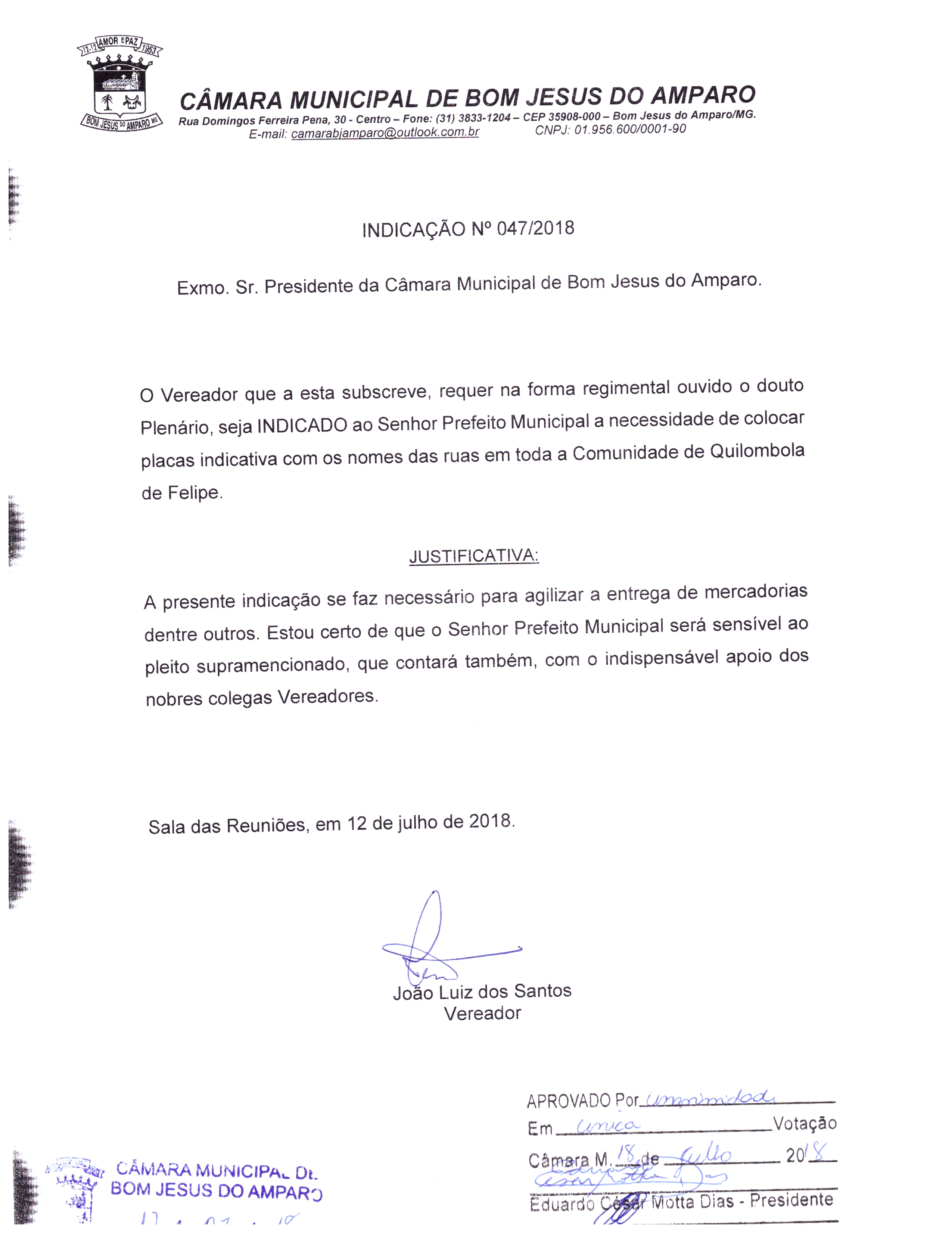 Protocolo: 47/2018, Data Protocolo: - Horário: