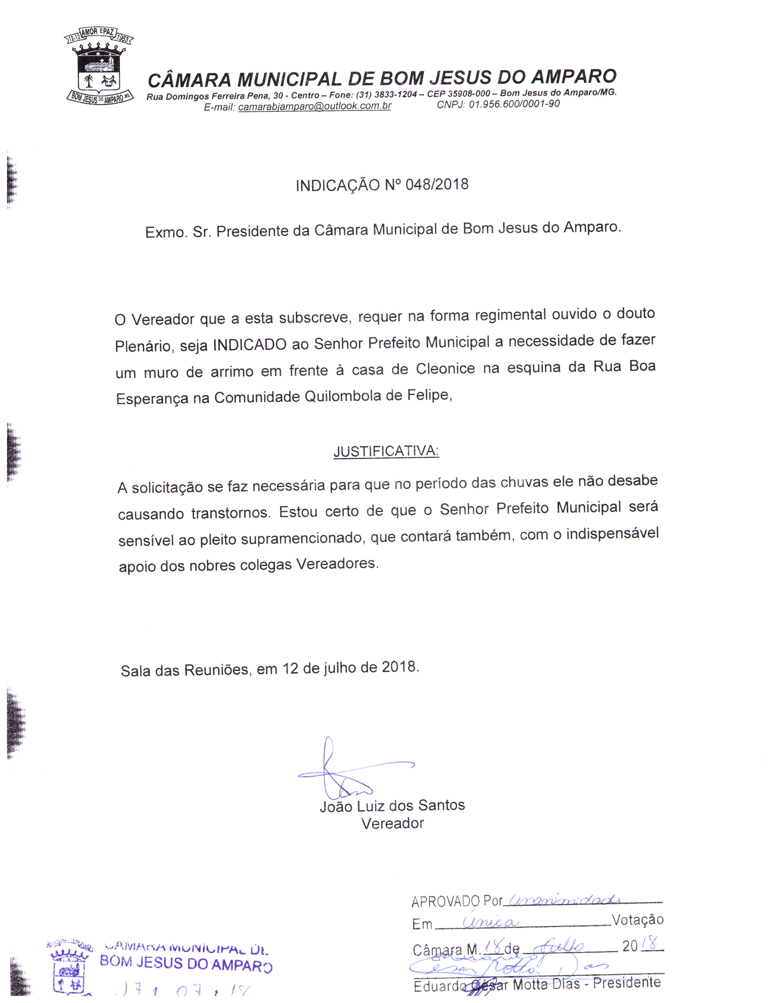 Protocolo: 48/2018, Data Protocolo: - Horário:
