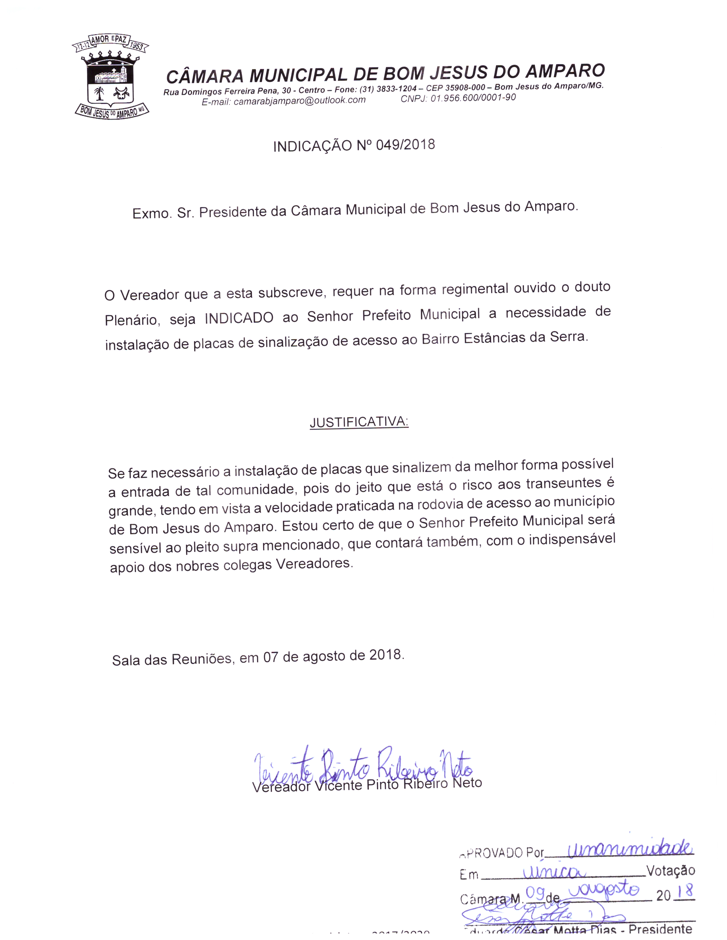 NECESSIDADE DE INSTALAÇÃO DE PLACAS DE SINALIZAÇÃO DE ACESSO AO BAIRRO ESTÂNCIAS DA SERRA.